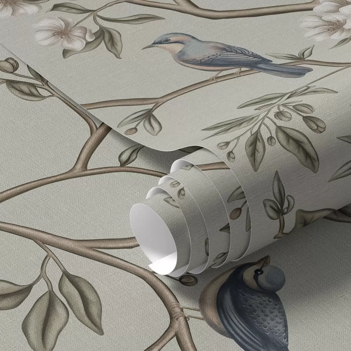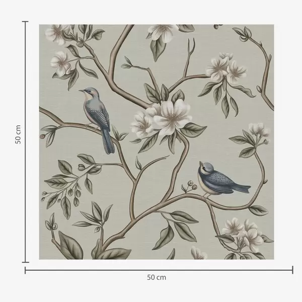 Carta da parati Rami con uccelli e fiori bianchi su uno sfondo delicato Nr. a00303