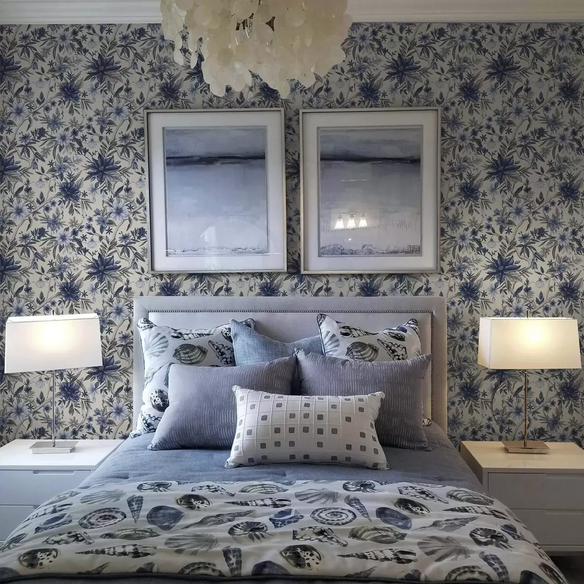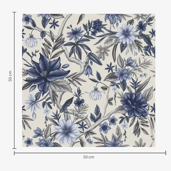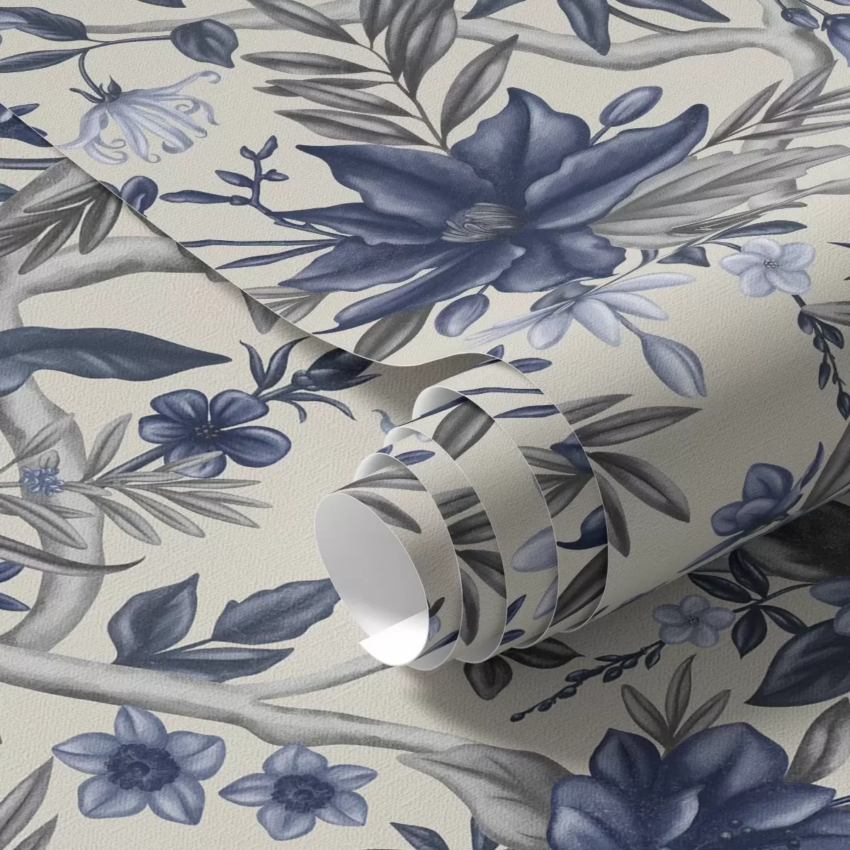Carta da parati Fiori blu e grigi su sfondo chiaro Nr. a00304
