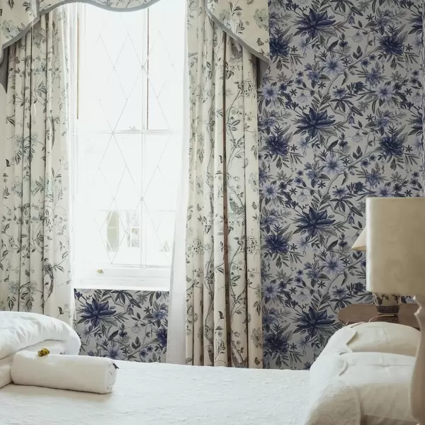 Carta da parati Fiori blu e grigi su sfondo chiaro Nr. a00304