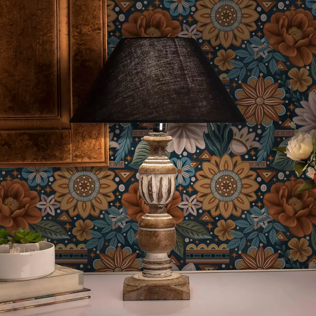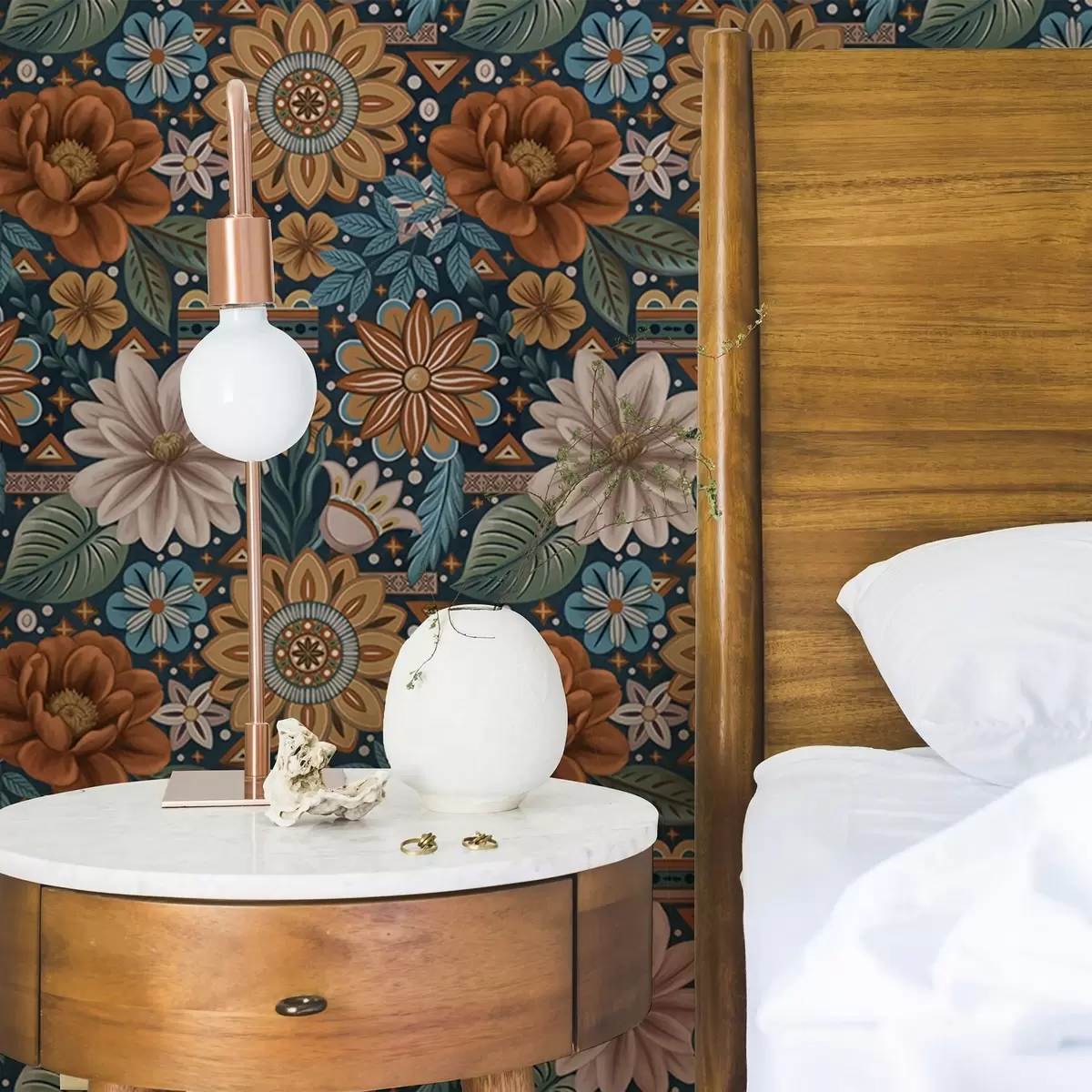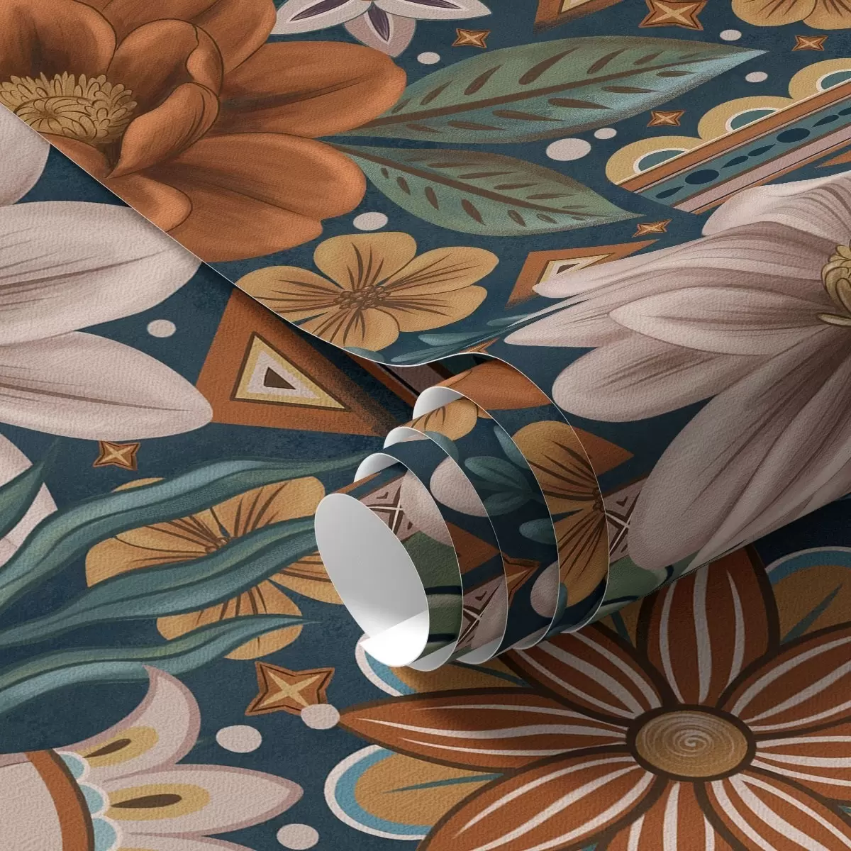 Carta da parati Fiori decorativi luminosi con elementi geometrici Nr. a00305