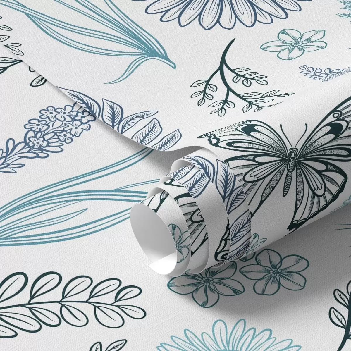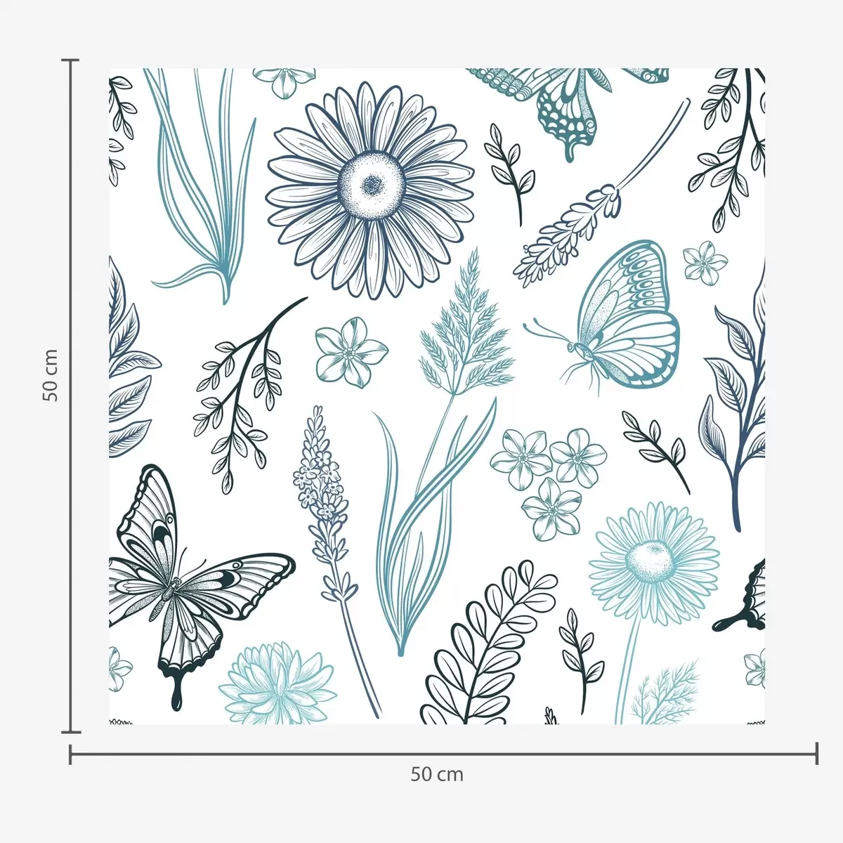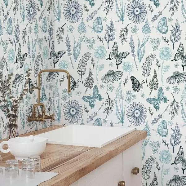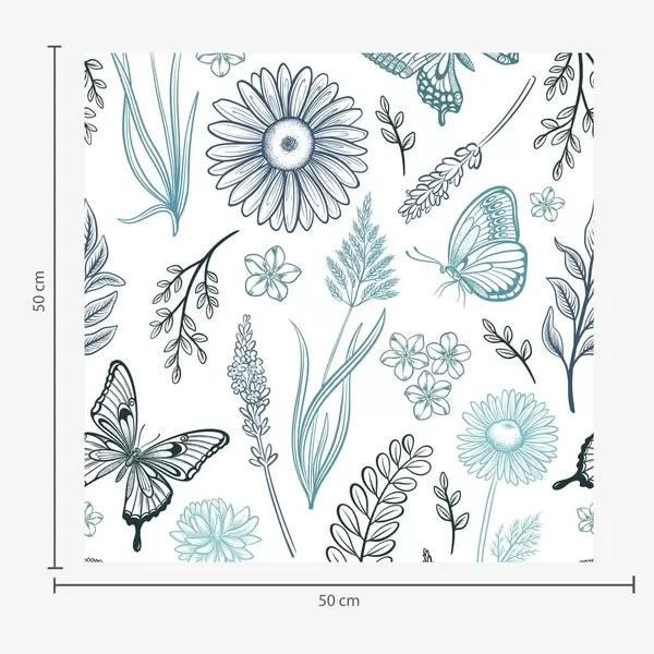 Carta da parati Contorno di farfalle e fiori nei toni del blu e dell'azzurro Nr. a00311