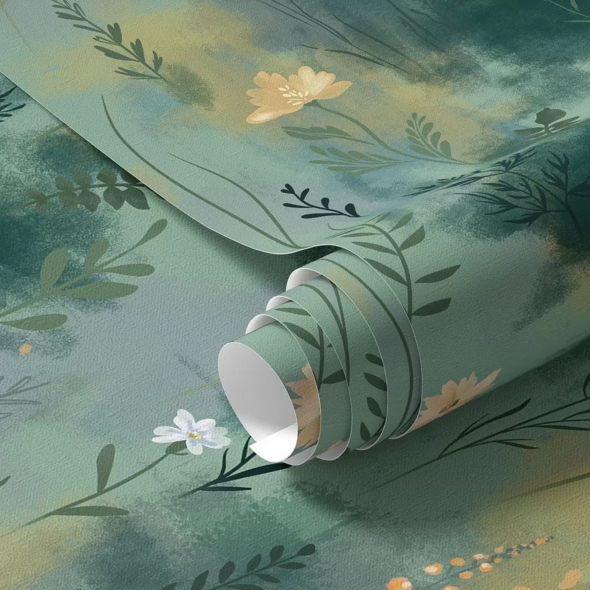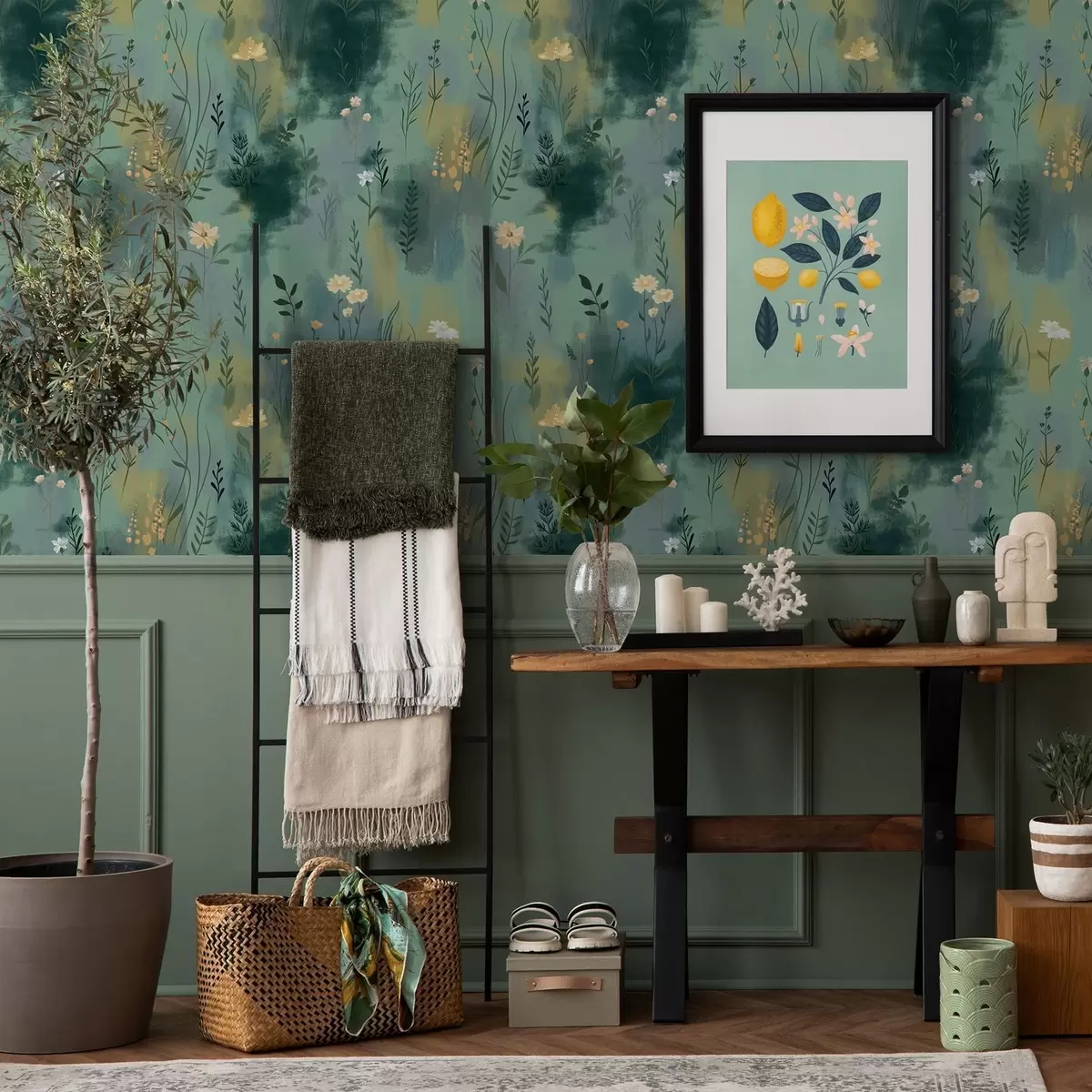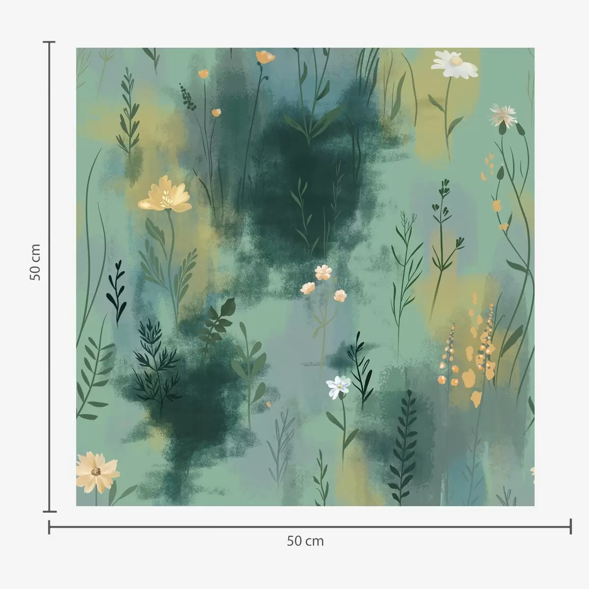Carta da parati Astrazione acquerello con fiori su sfondo verde Nr. a00312