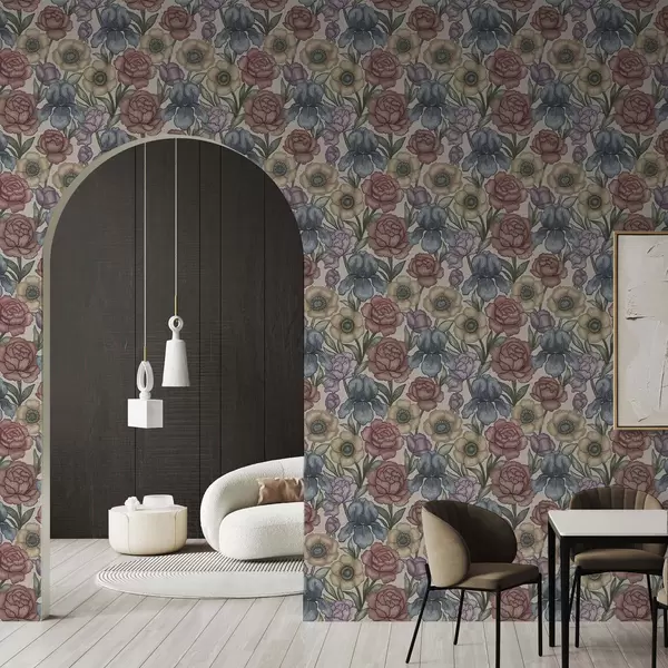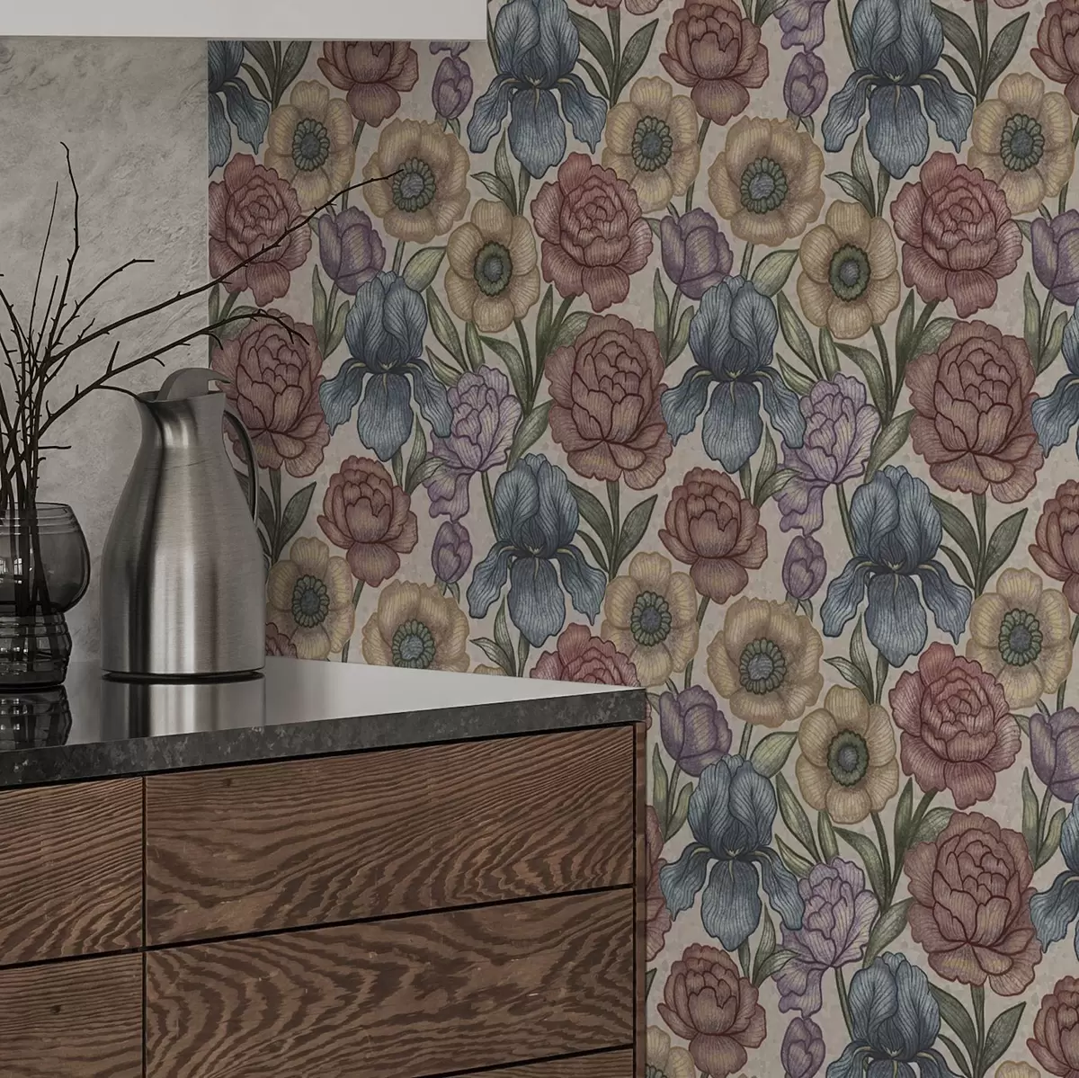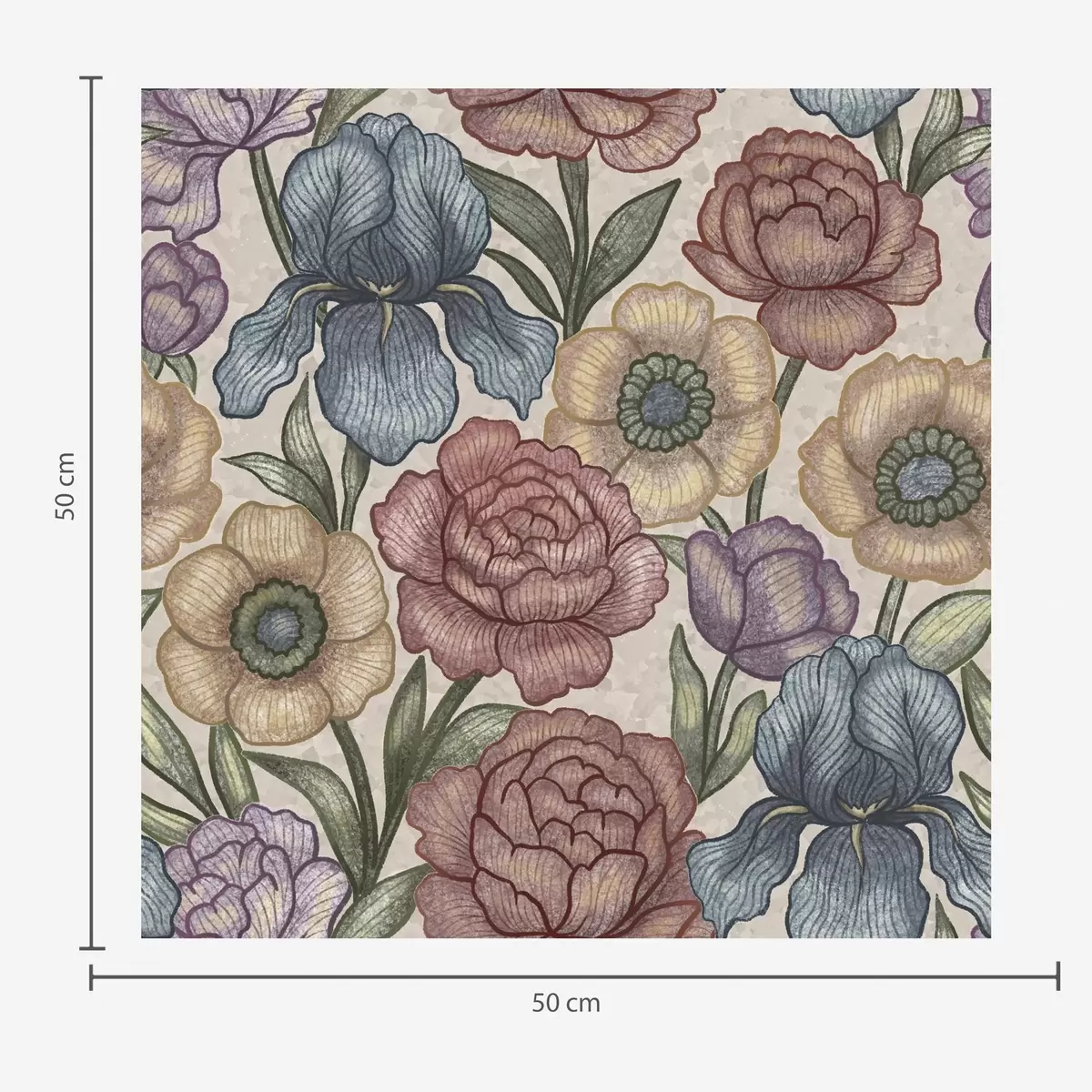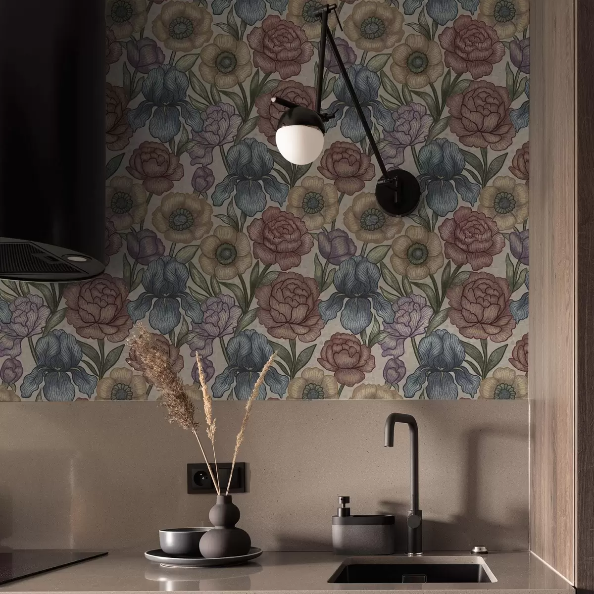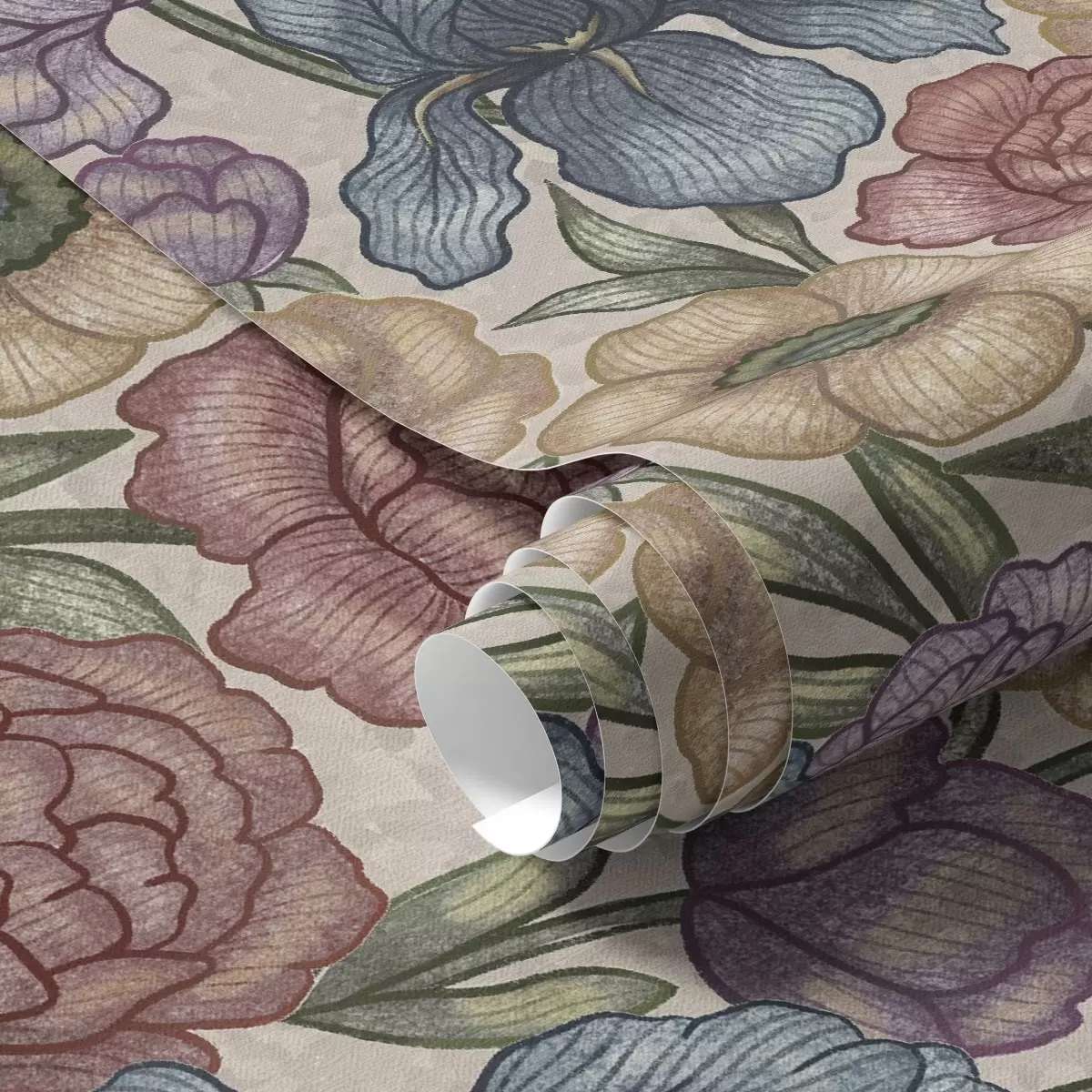 Carta da parati Grandi illustrazioni floreali con iris e peonie Nr. a00325