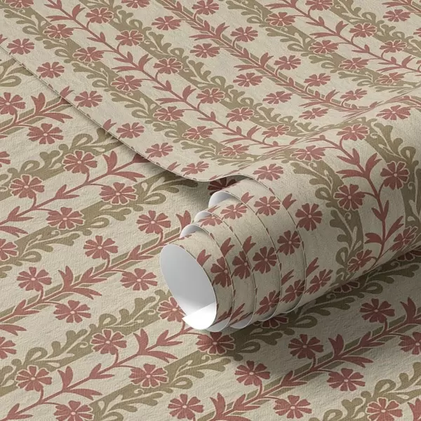 Carta da parati Ornamento a righe con fiori rossi Nr. a00341