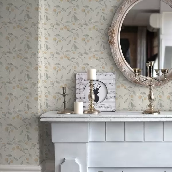 Carta da parati Rami chiari con bacche arancioni Nr. a00344