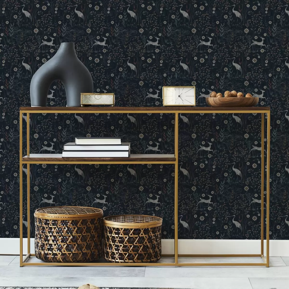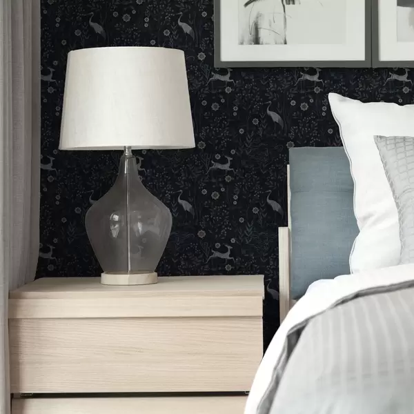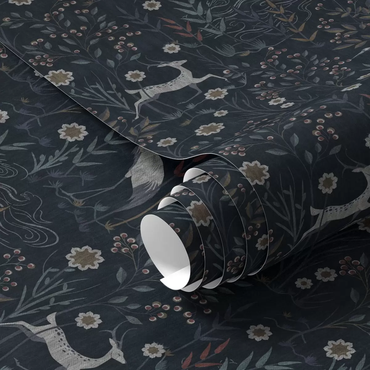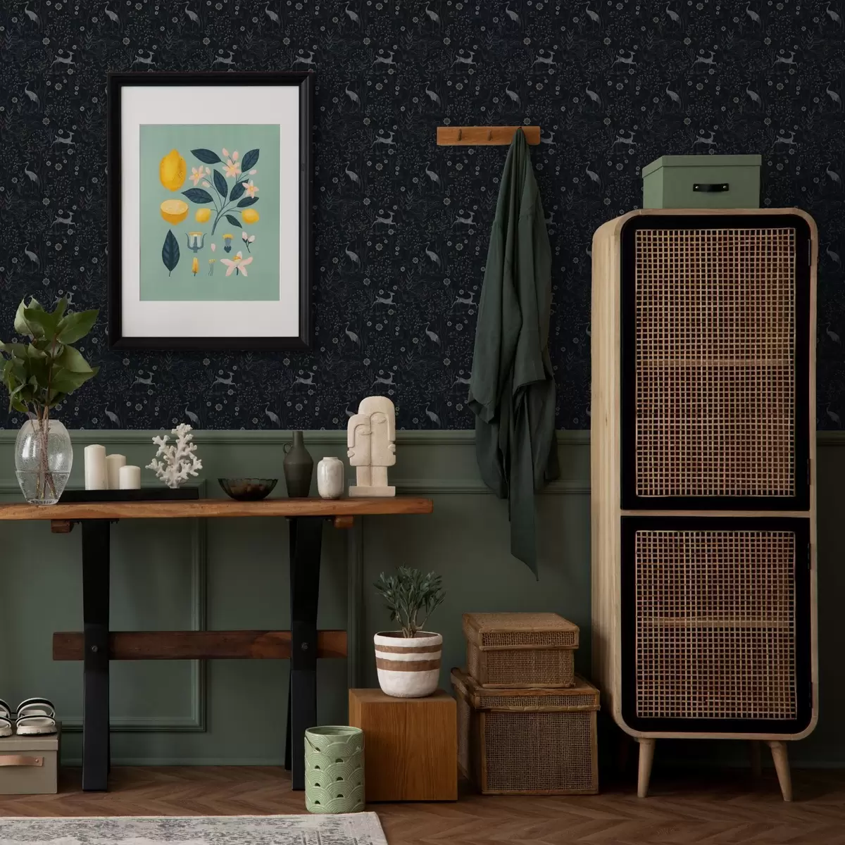 Carta da parati Sfondo scuro con uccelli e cervi bianchi Nr. a00363