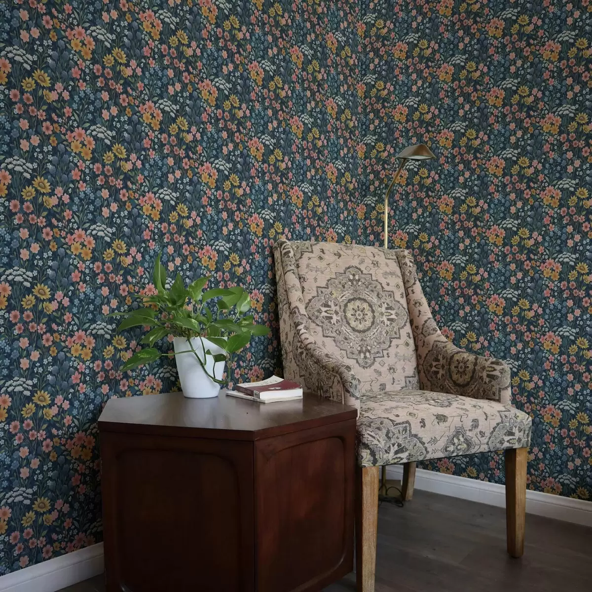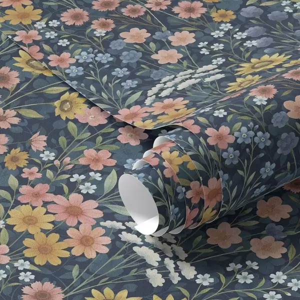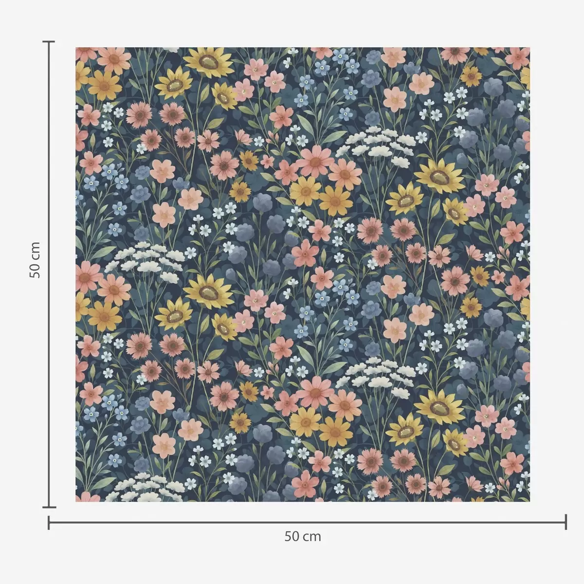 Carta da parati Fiori di prato colorati ad acquerello su blu navy Nr. a00381