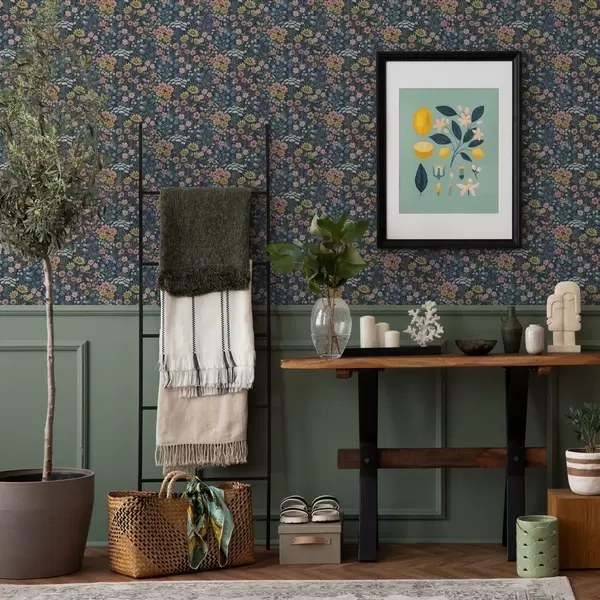 Carta da parati Fiori di prato colorati ad acquerello su blu navy Nr. a00381