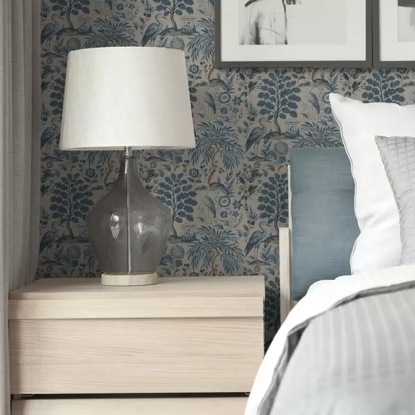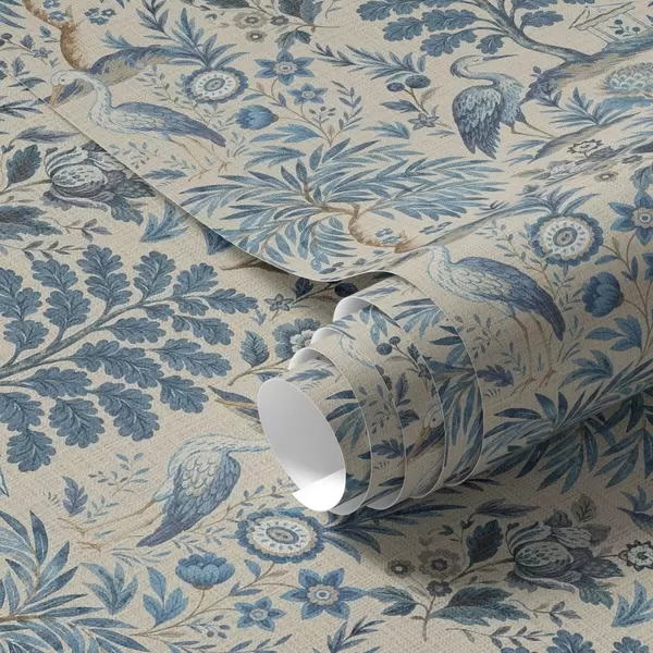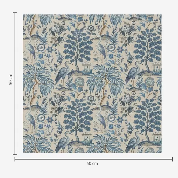 Carta da parati Stile Toile de Jouy con uccelli blu e alberi tropicali Nr. a00382