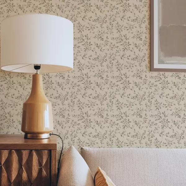 Carta da parati Delicati rami di fiori pastello su sfondo beige Nr. a00390