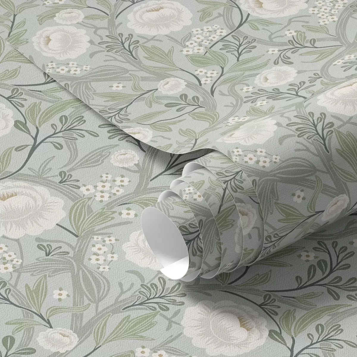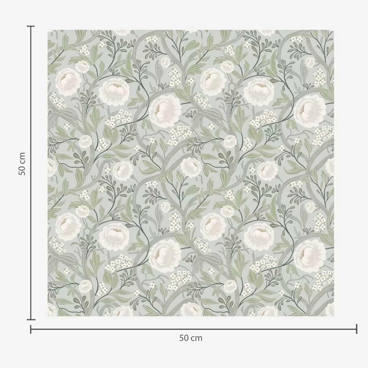 Carta da parati Delicate foglie verdi e fiori color crema con foglie verdi e fiori color crema con graziosi rampicanti Nr. a00398
