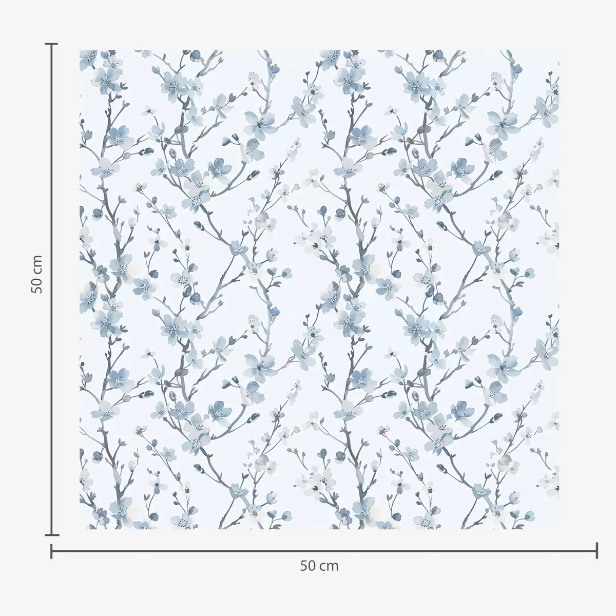 Carta da parati Fiori di ciliegio blu su sfondo bianco con contrasto morbido Nr. a00399