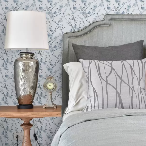 Carta da parati Fiori di ciliegio blu su sfondo bianco con contrasto morbido Nr. a00399