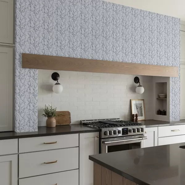 Carta da parati Fiori di ciliegio blu su sfondo bianco con contrasto morbido Nr. a00399