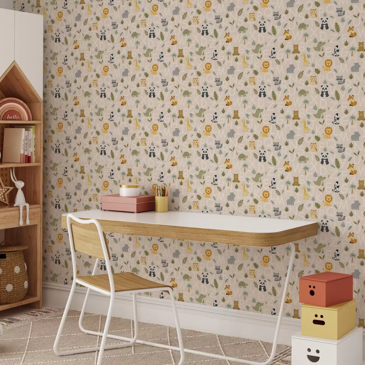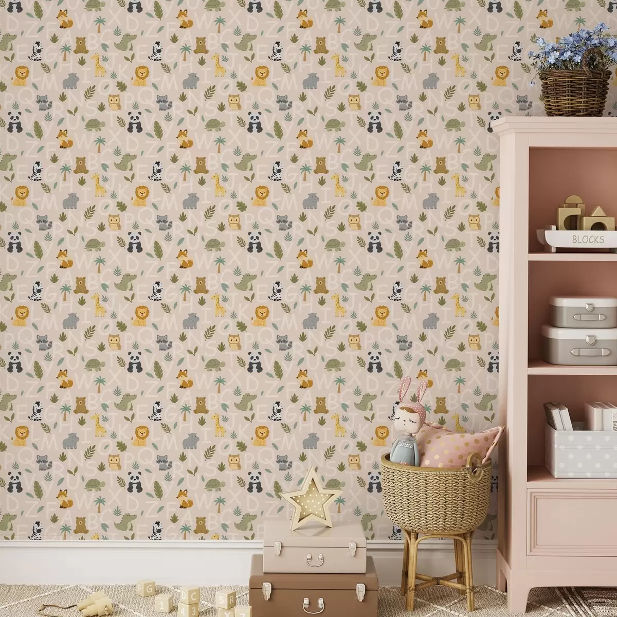 Carta da parati Alfabeto con simpatici animali e piante per bambini Nr. a00400