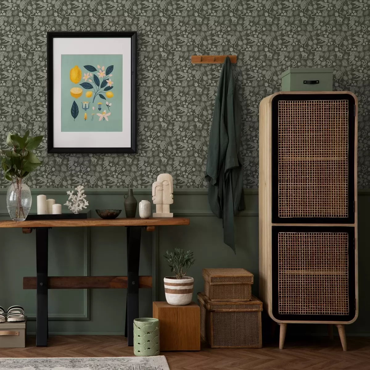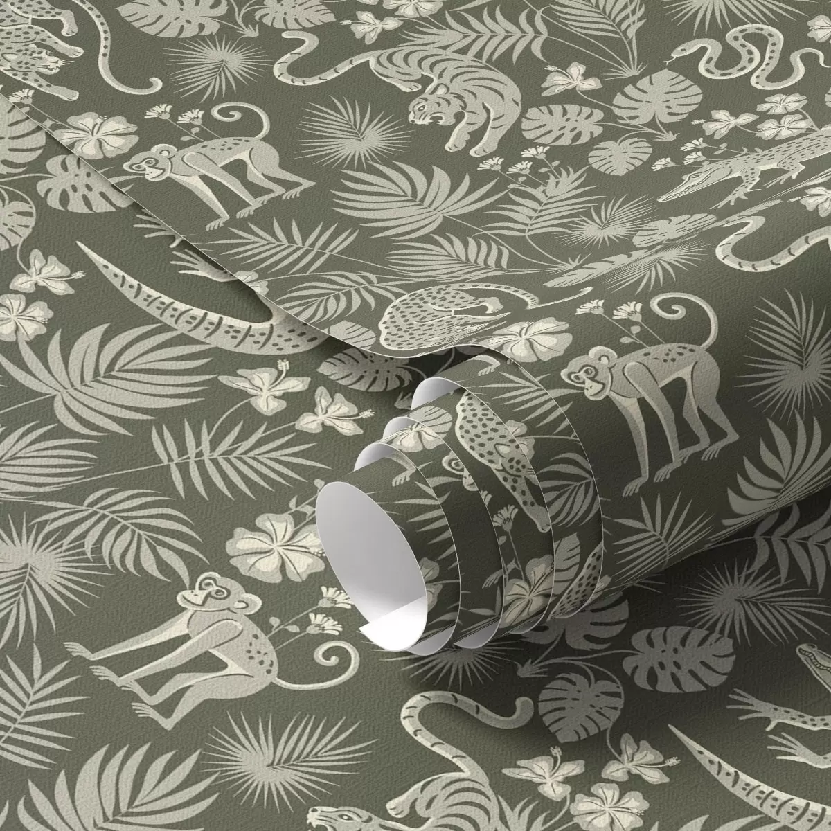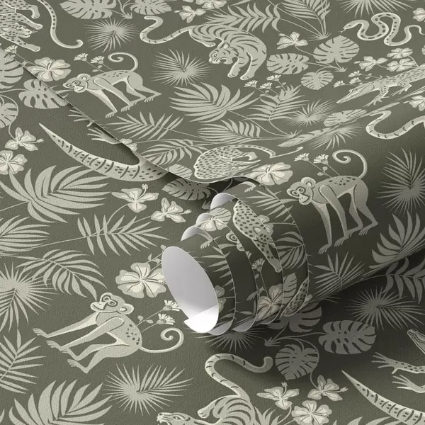 Carta da parati Silhouette di animali selvatici tra le foglie tropicali Nr. a00404
