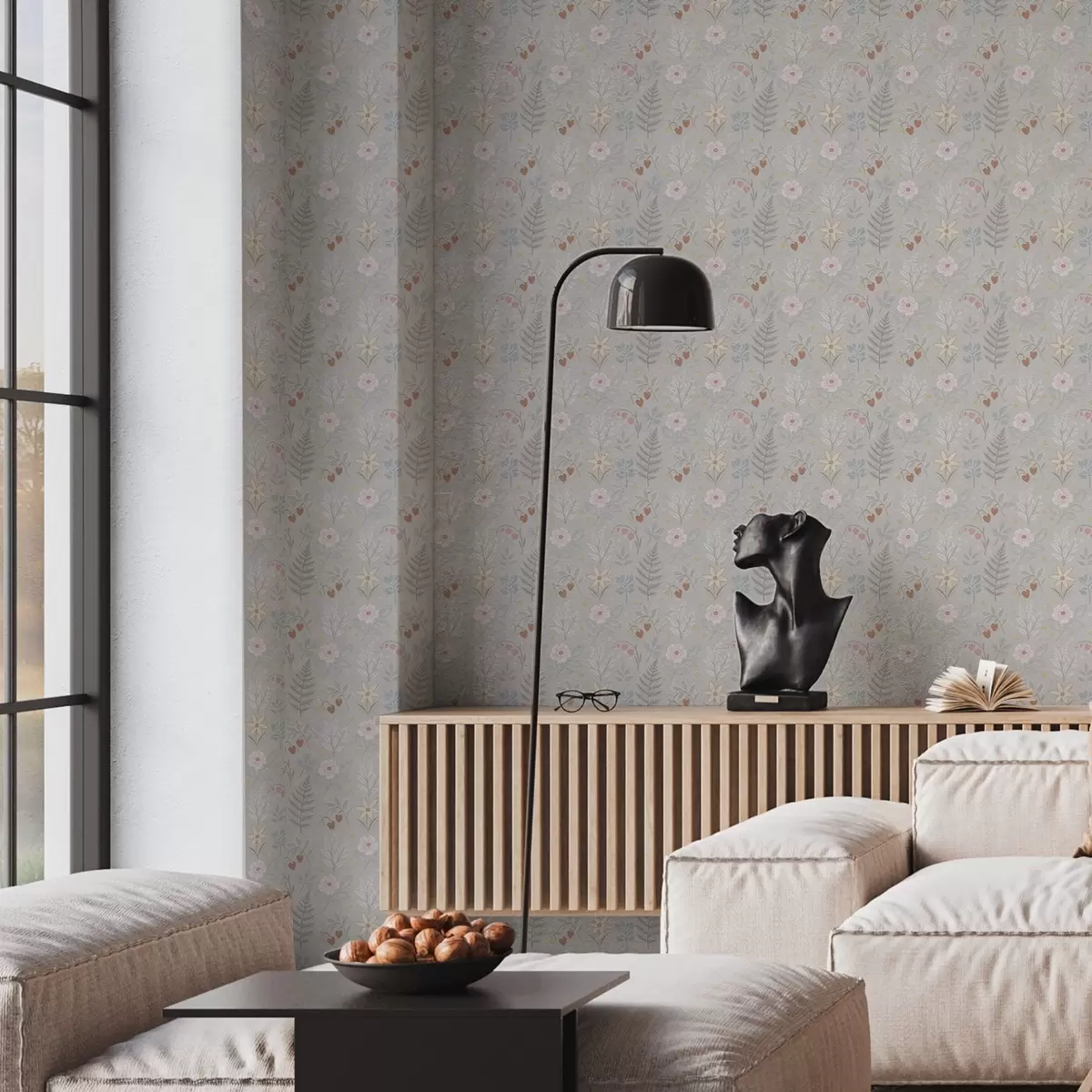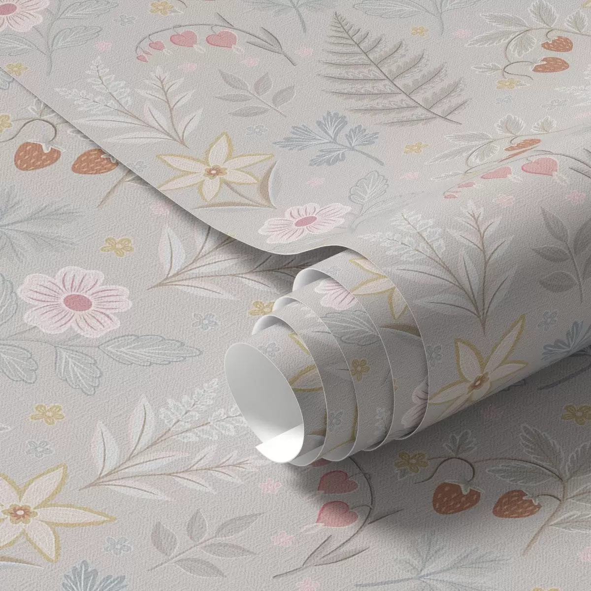 Carta da parati Fiori e bacche pastello su uno sfondo grigio chiaro Nr. a00406