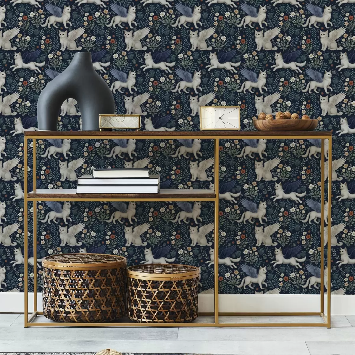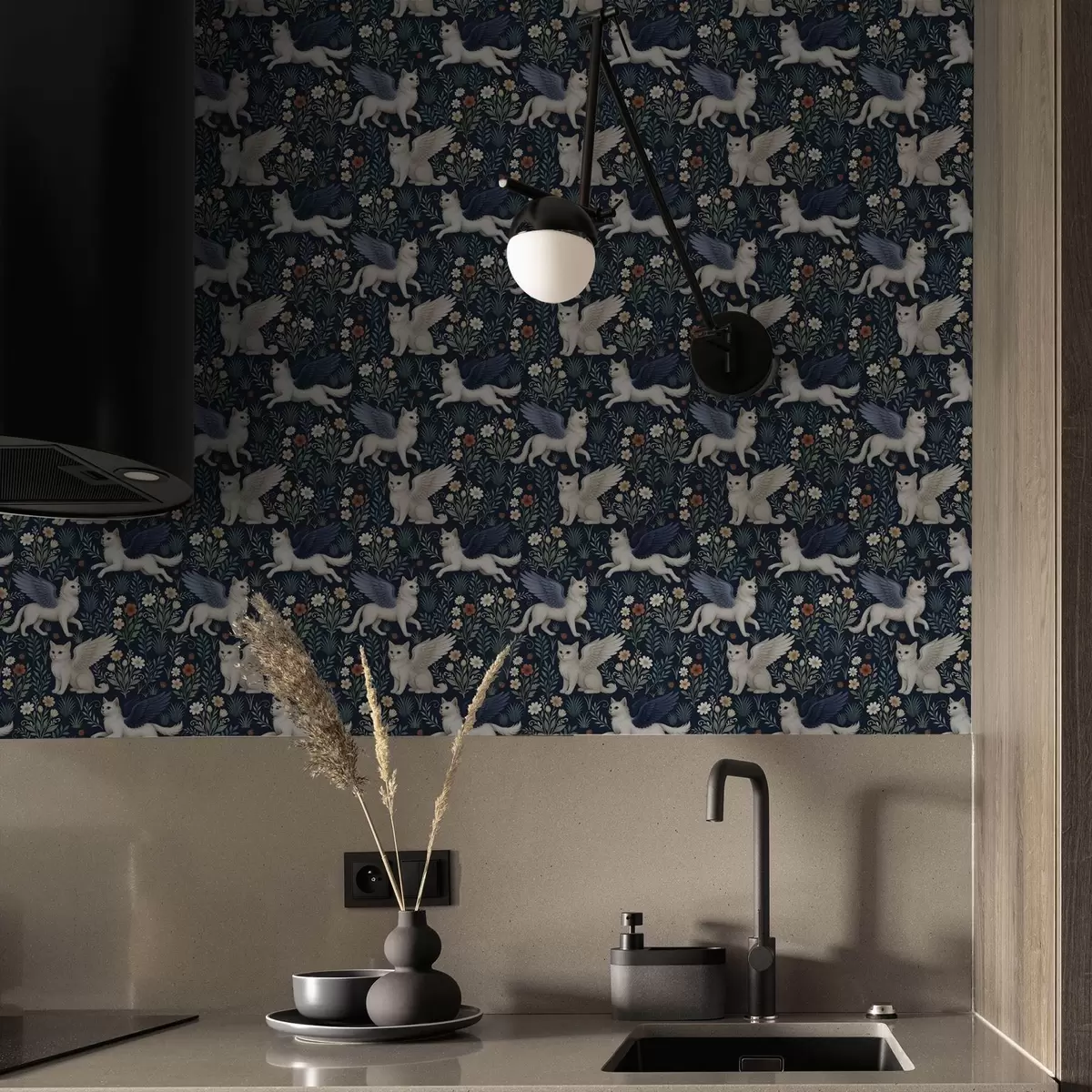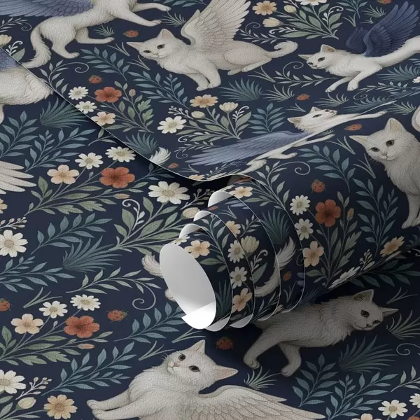 Carta da parati Gatti di fantasia con le ali tra i fiori Nr. a00408