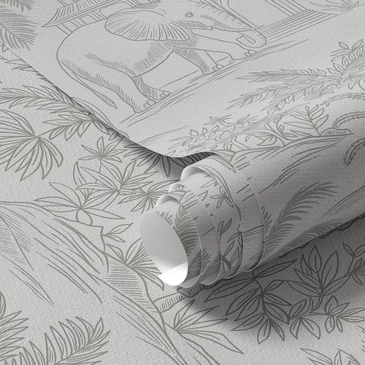 Carta da parati Elefanti monocromatici e giungla in stile grafico Nr. a00410