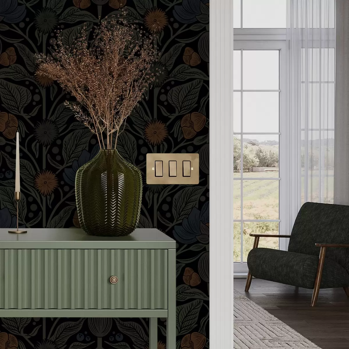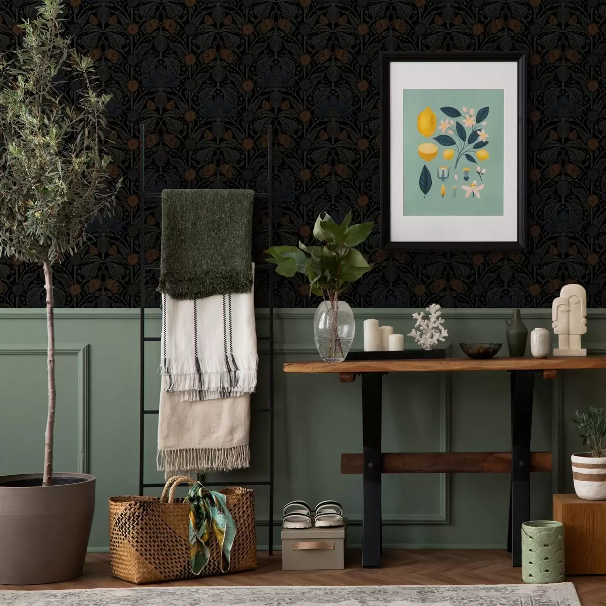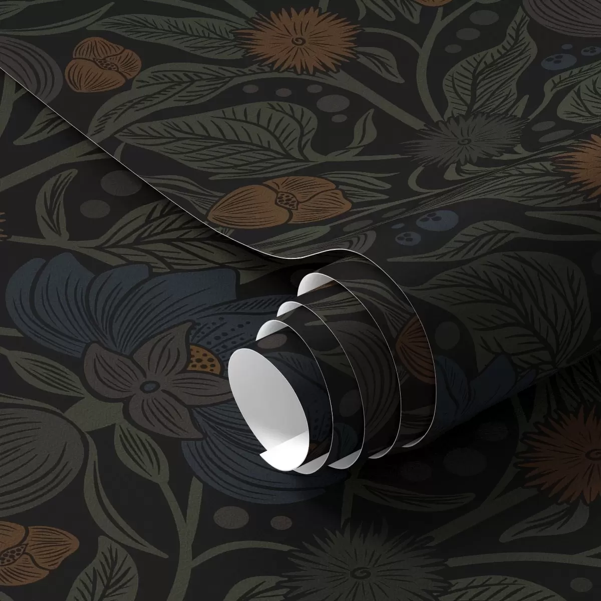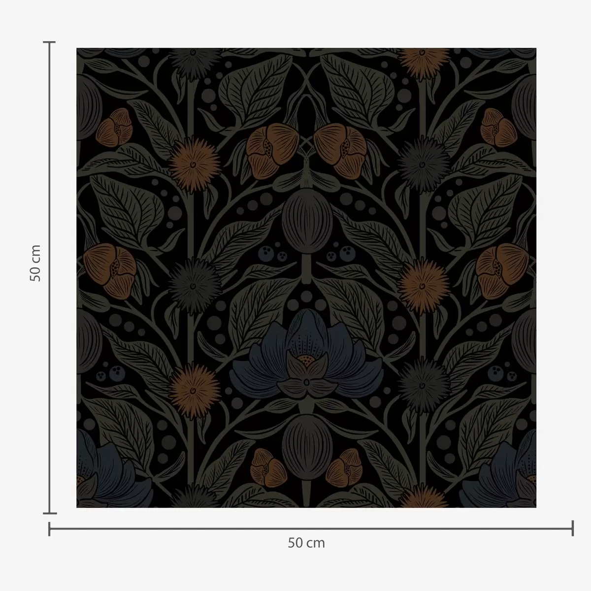 Carta da parati Ornamento floreale scuro con accenti arancioni Nr. a00411