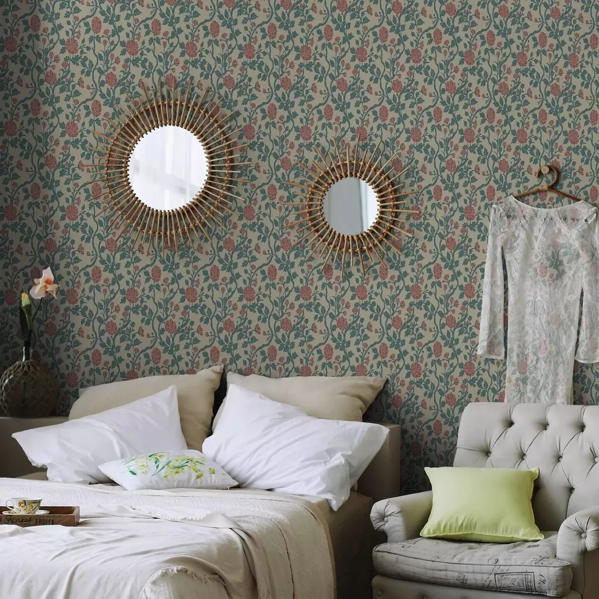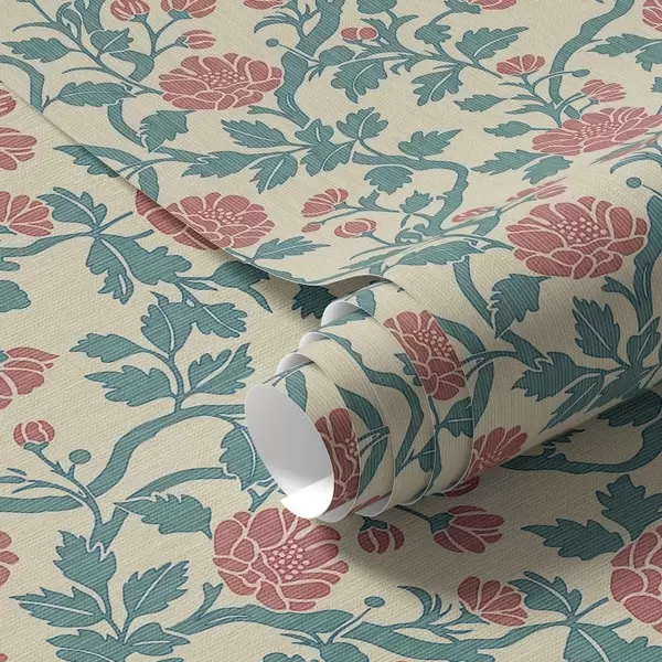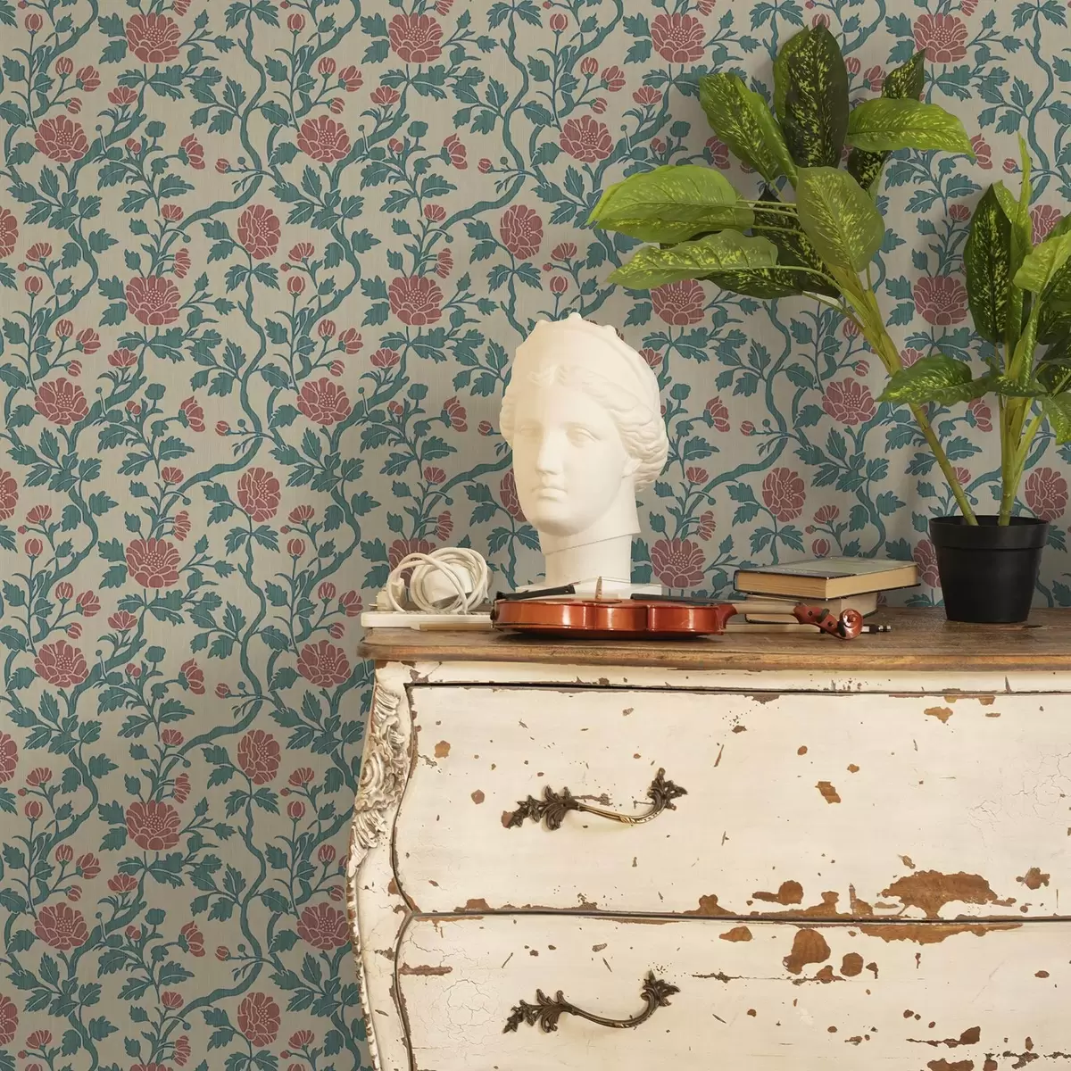 Carta da parati Fiori rosa ornamentali su sfondo beige Nr. a00414