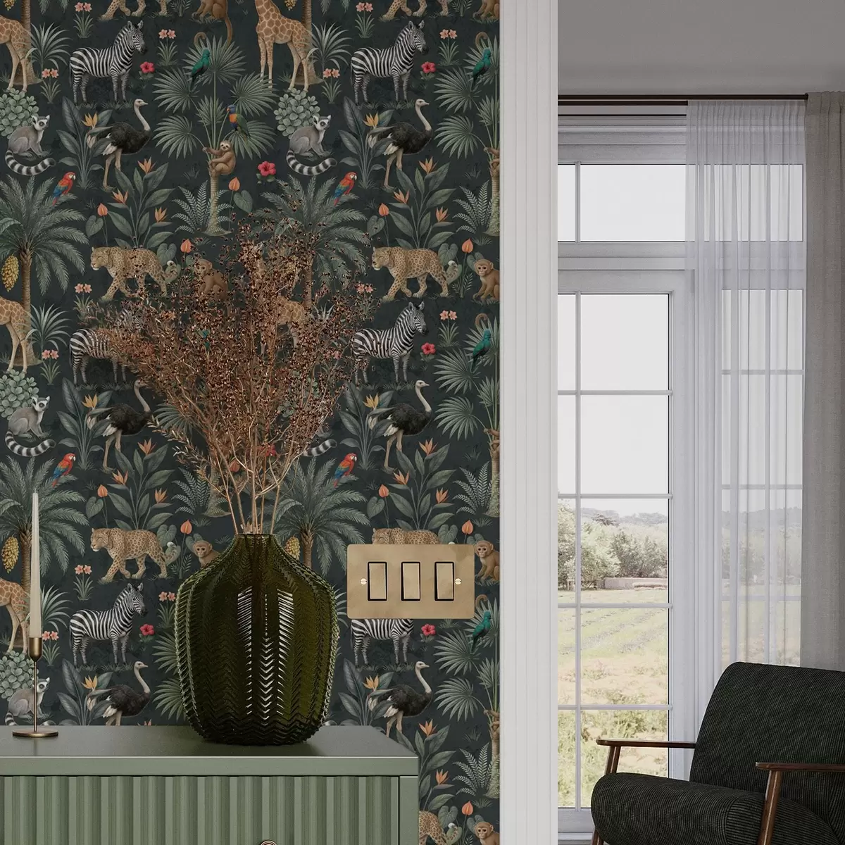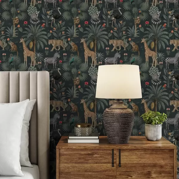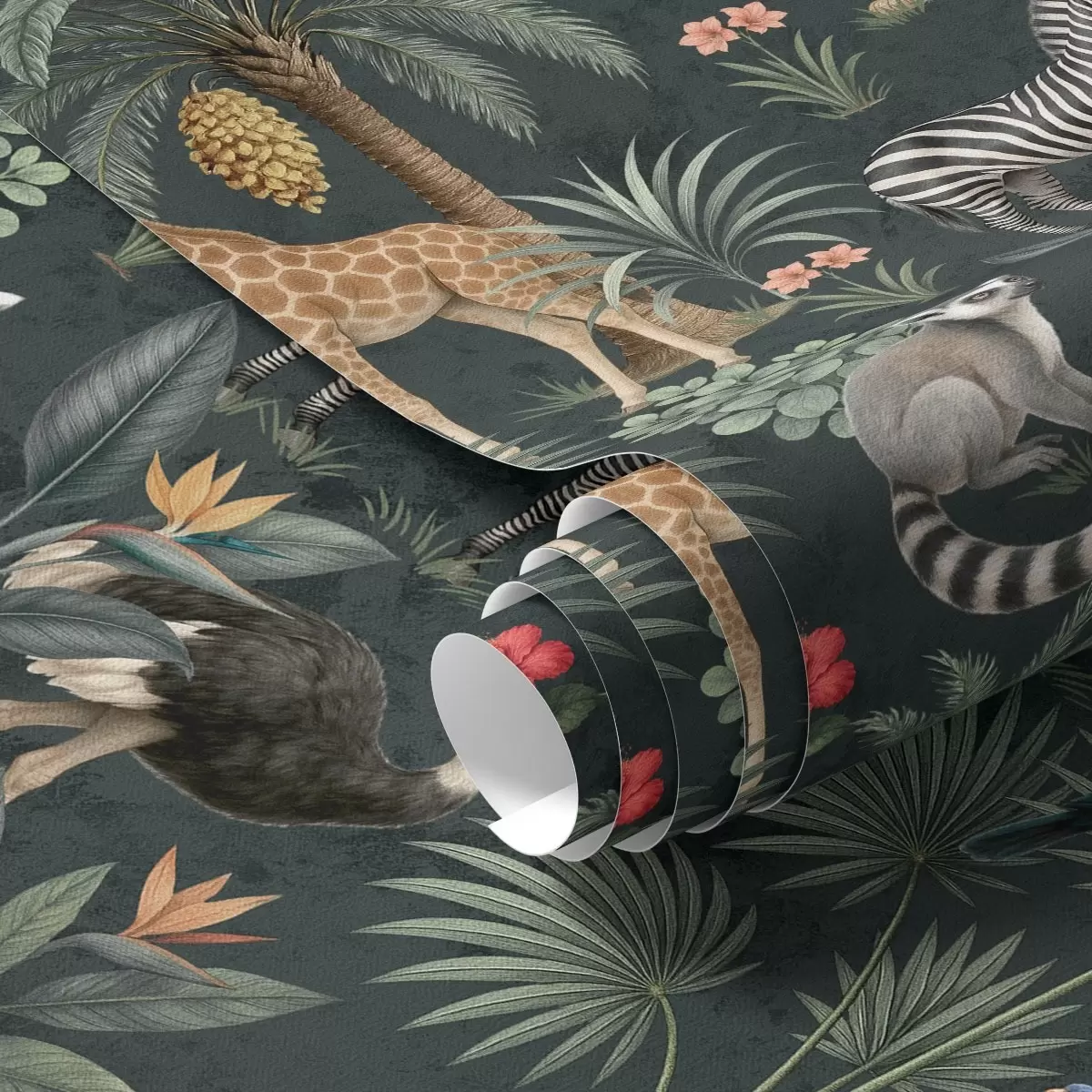 Carta da parati Animali tropicali realistici tra le piante Nr. a00427