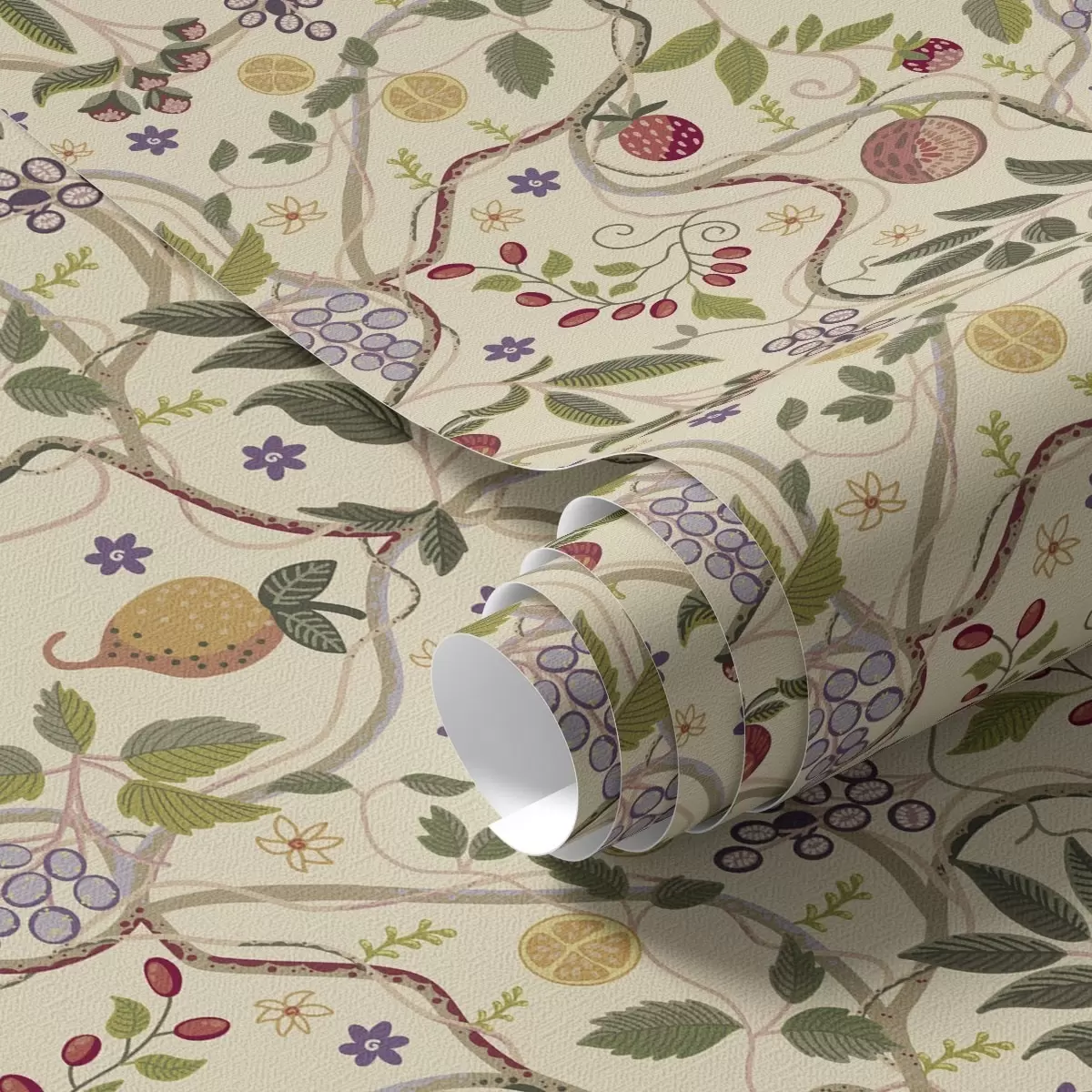 Carta da parati Disegno di frutta con bacche, rami e fiori Nr. a00428
