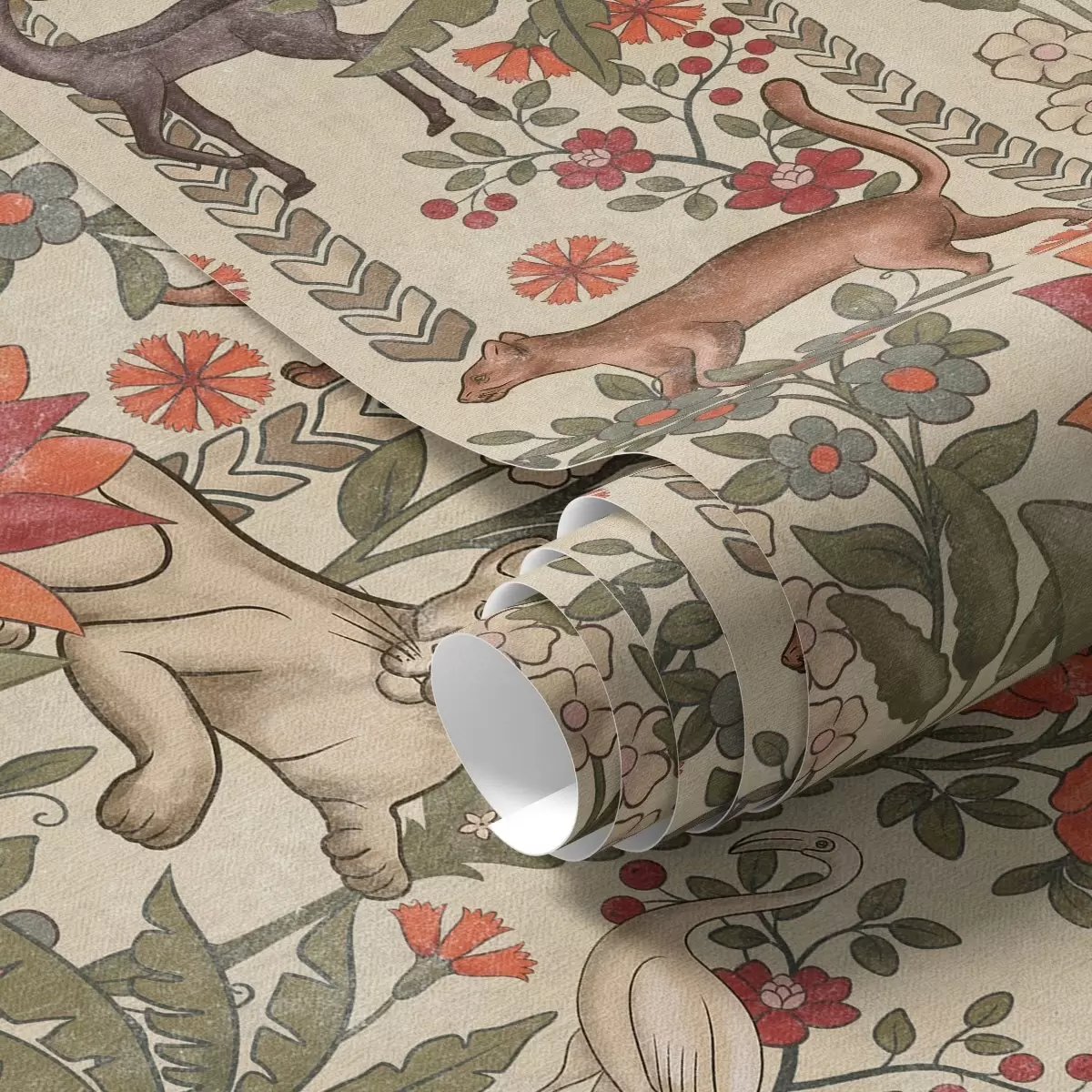Carta da parati Stile retrò: Animali e fiori su sfondo vintage a00431