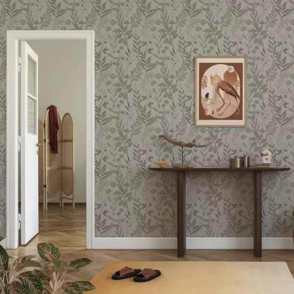 Carta da parati Fiori selvatici abbozzati in toni naturali Nr. a00432