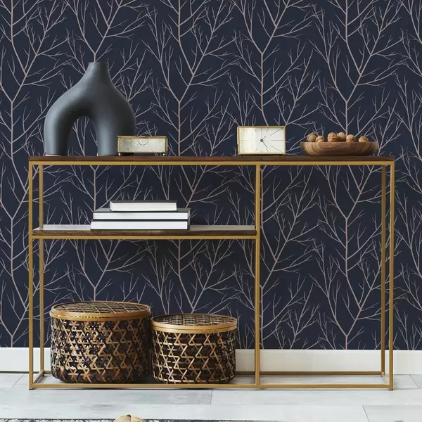 Carta da parati Morbidi rami rossi su uno sfondo blu scuro Nr. a00451
