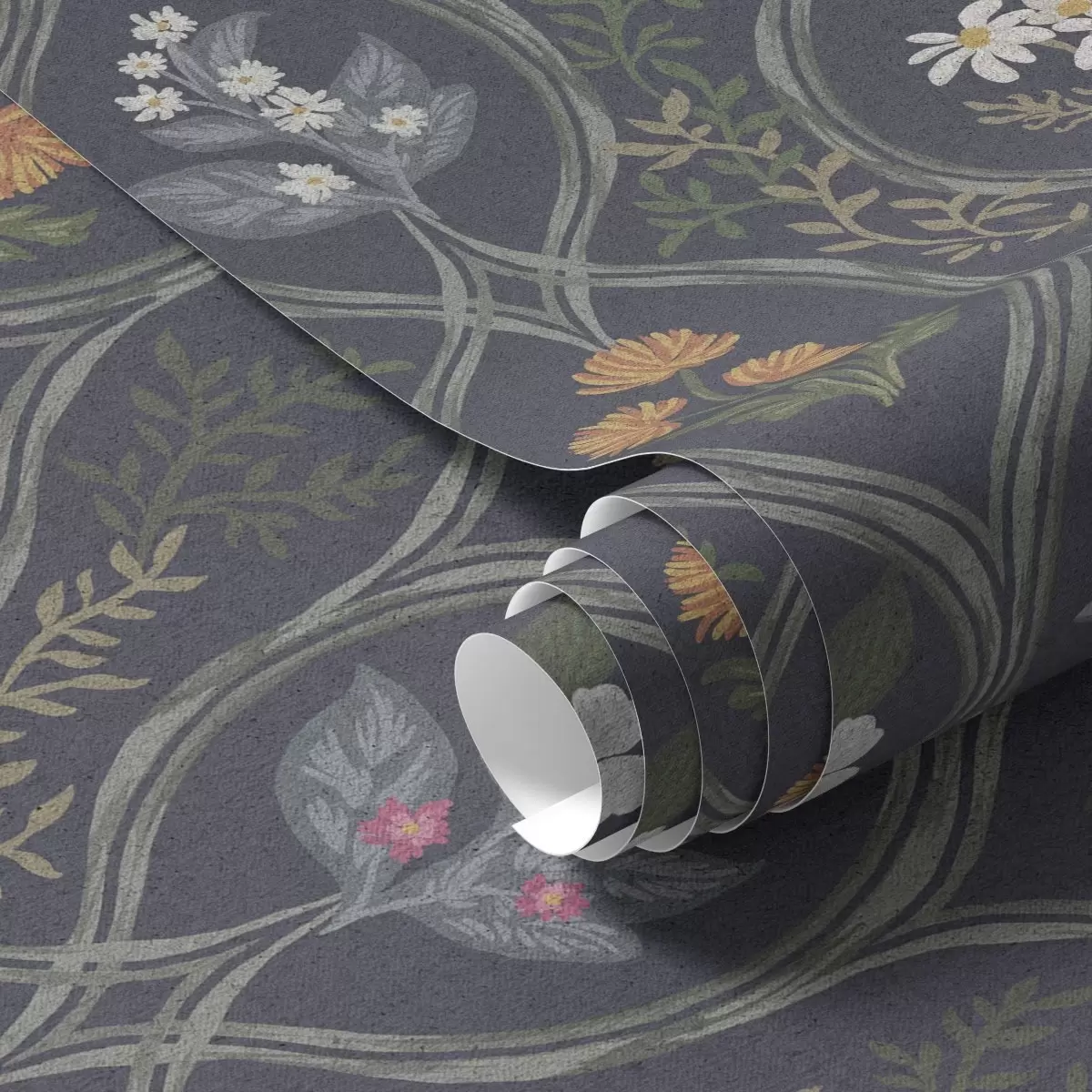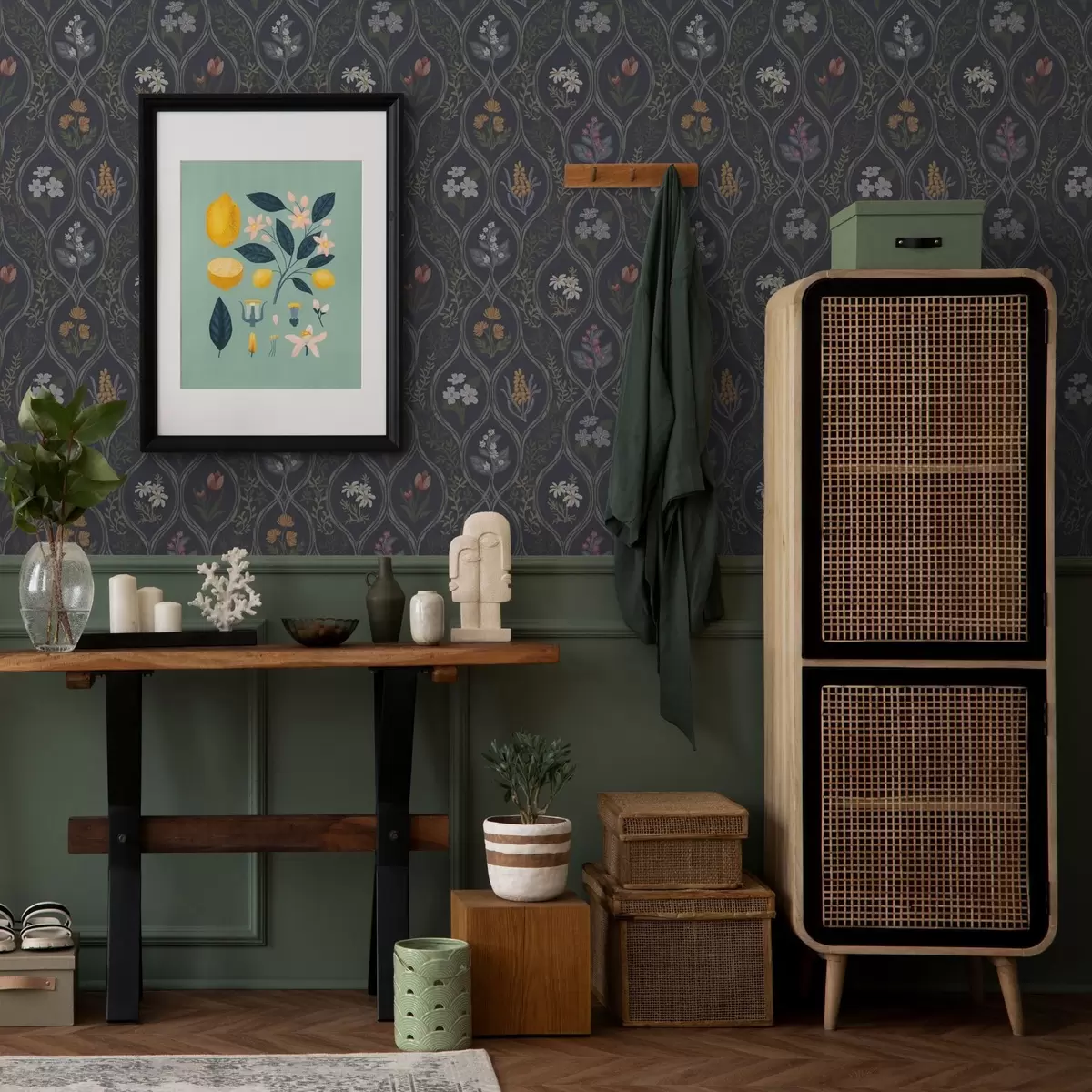 Carta da parati Cornice vintage scura con fiori da giardino colorati Nr. a00454