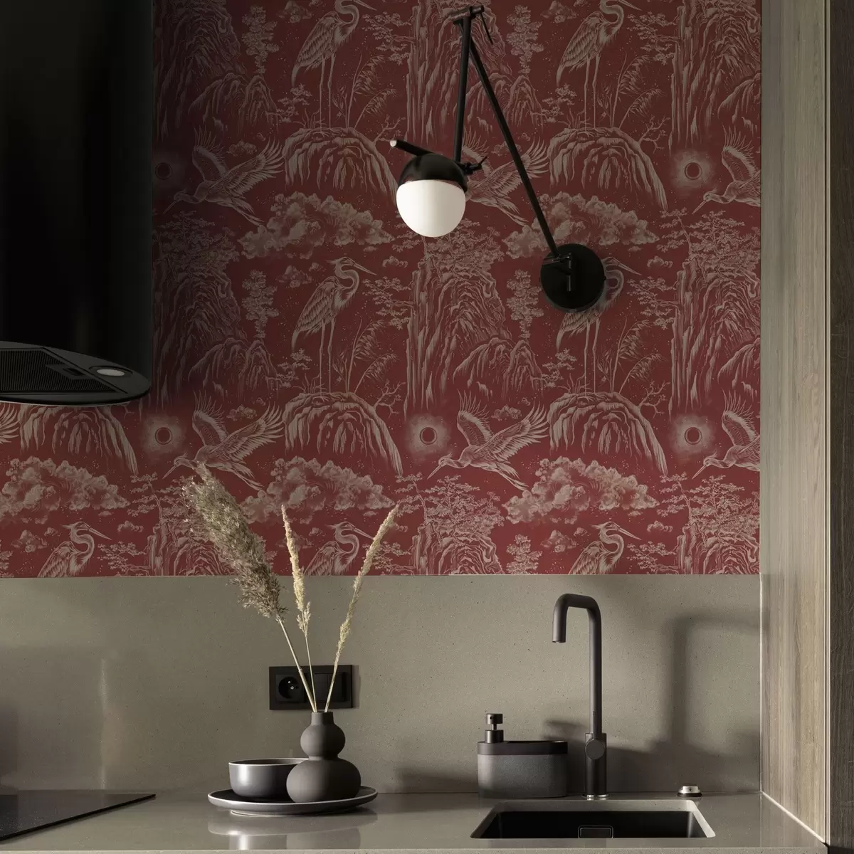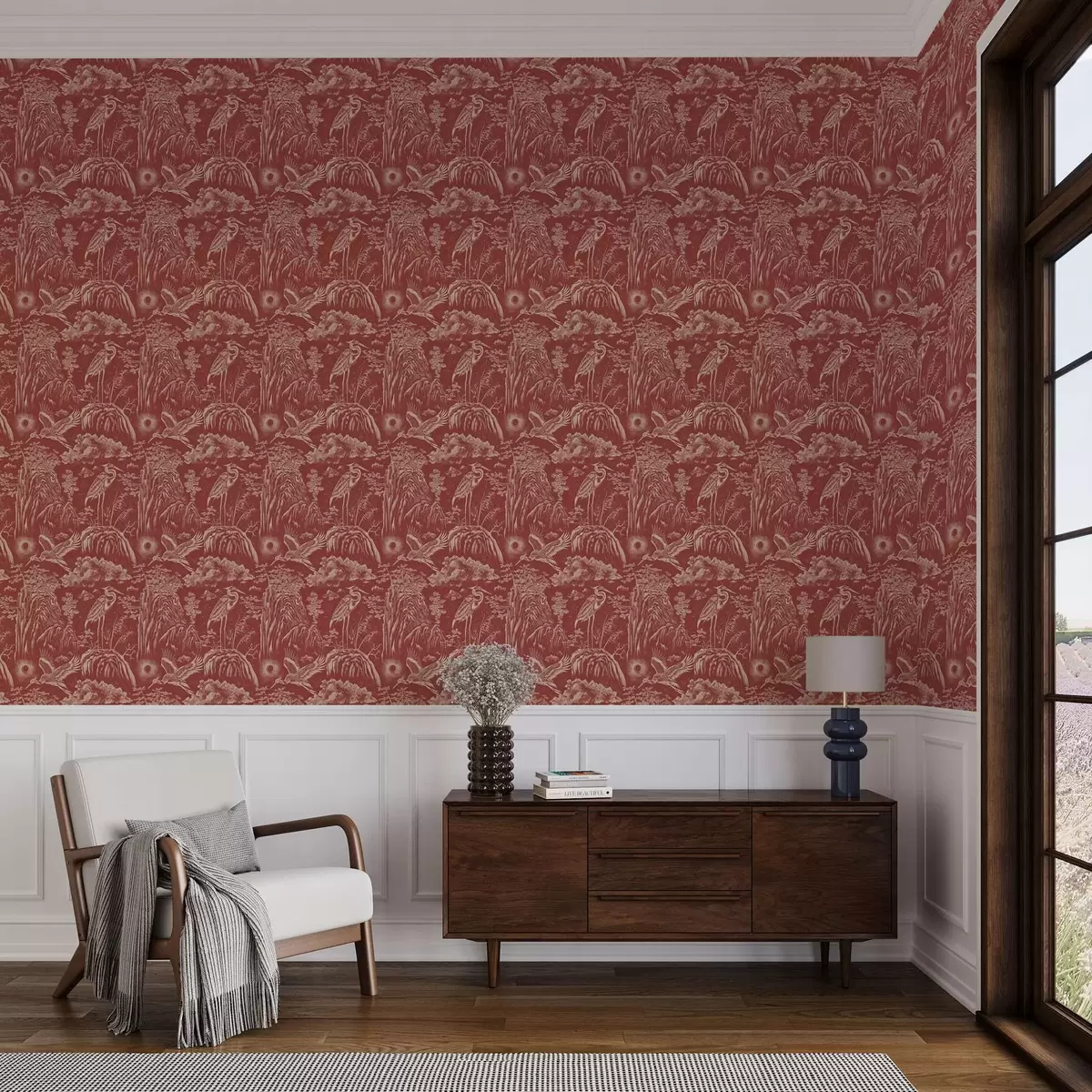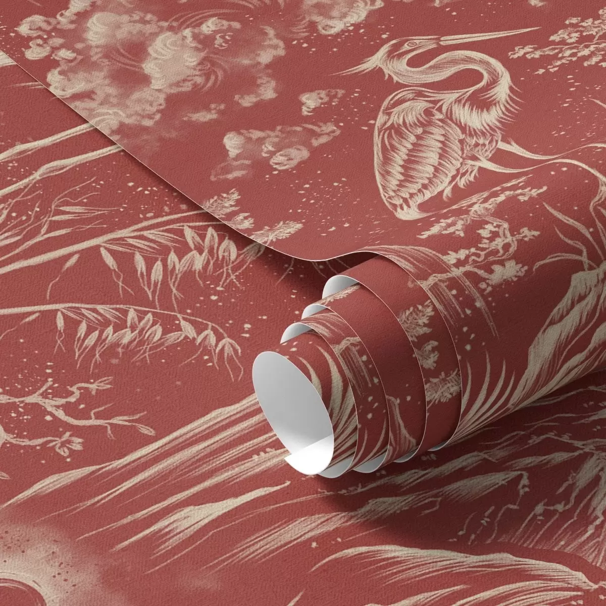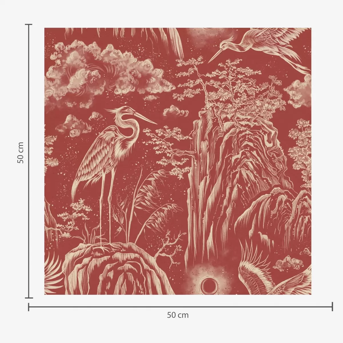 Carta da parati Aironi, montagne e nuvole nello stile dell'incisione giapponese Nr. a00458