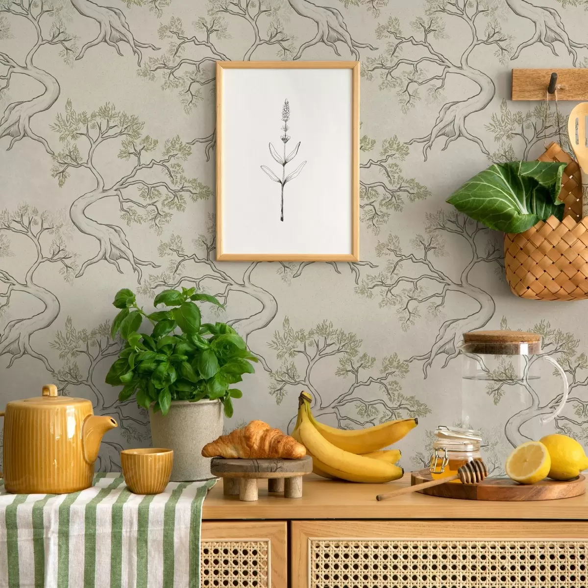 Carta da parati Alberi monocromatici con tronchi ricurvi e fantasiosi Nr. a00468
