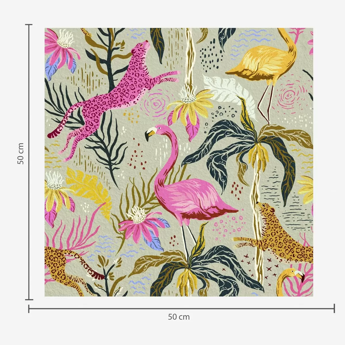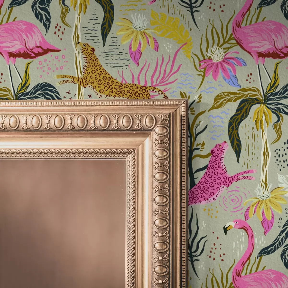 Carta da parati Fenicotteri e leopardi luminosi tra le piante tropicali Nr. a00470