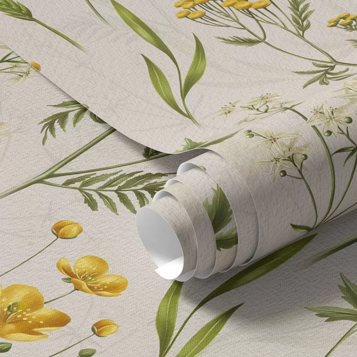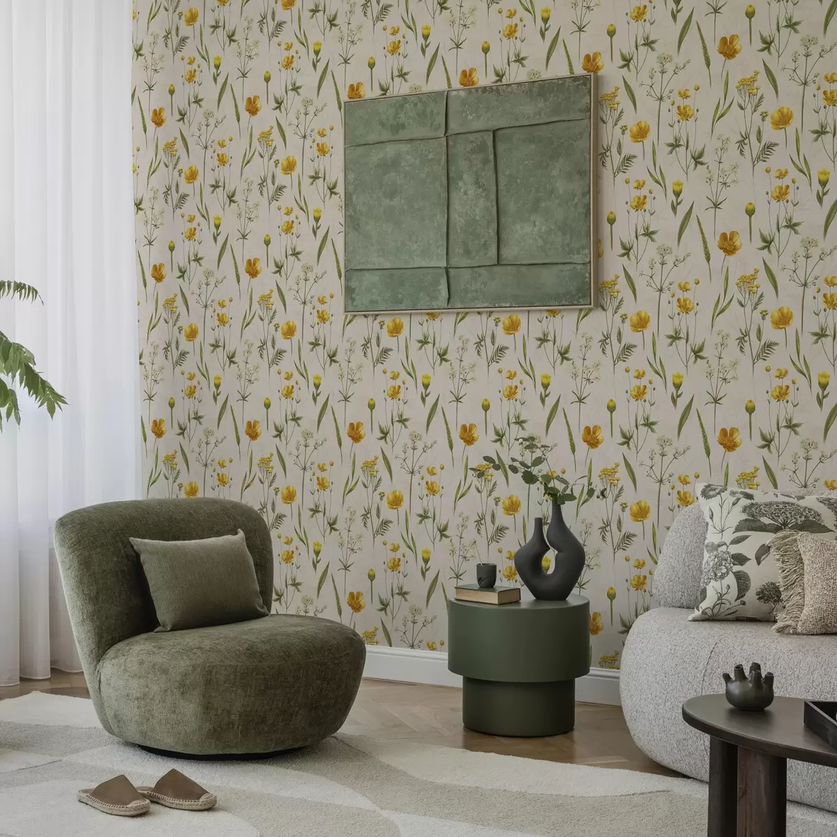 Carta da parati Fiori gialli e verde su sfondo beige Nr. a00472v2