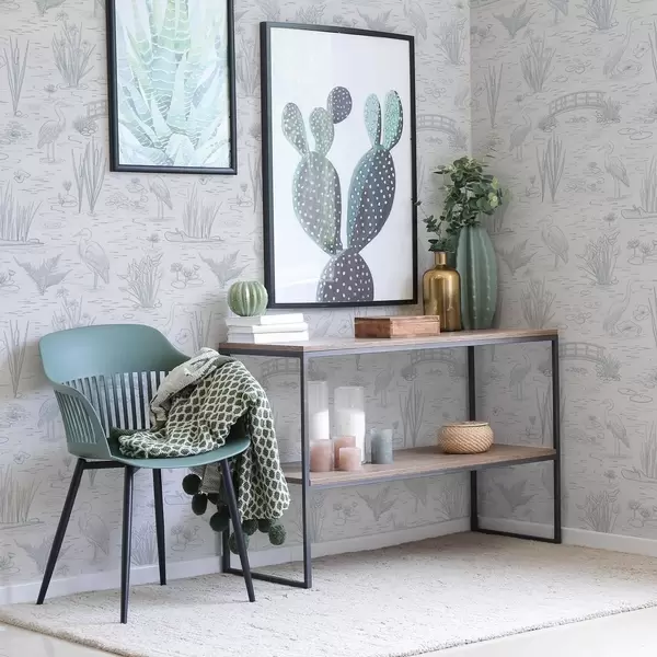 Carta da parati Disegno di aironi e piante acquatiche in calme tonalità di grigio Nr. a00479