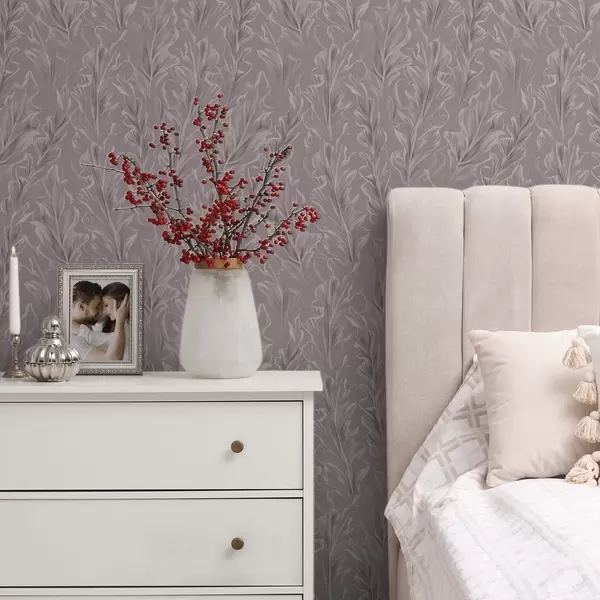 Carta da parati Onde fluenti di foglie in una palette di colori rosa antico e beige Nr. a00495