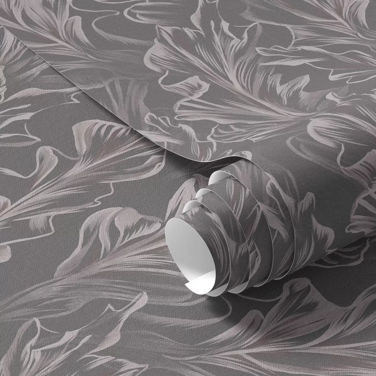 Carta da parati Onde fluenti di foglie su sfondo grafite, alto contrasto Nr. a00495v1