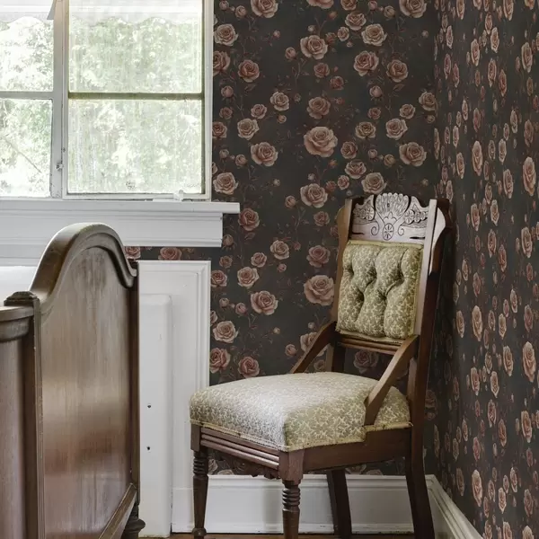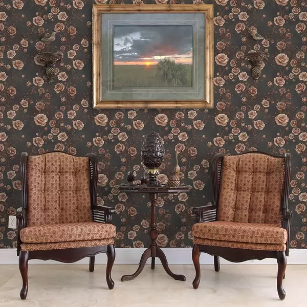 Carta da parati Rose vintage su sfondo grafite, palette terracotta Nr. a00497v1