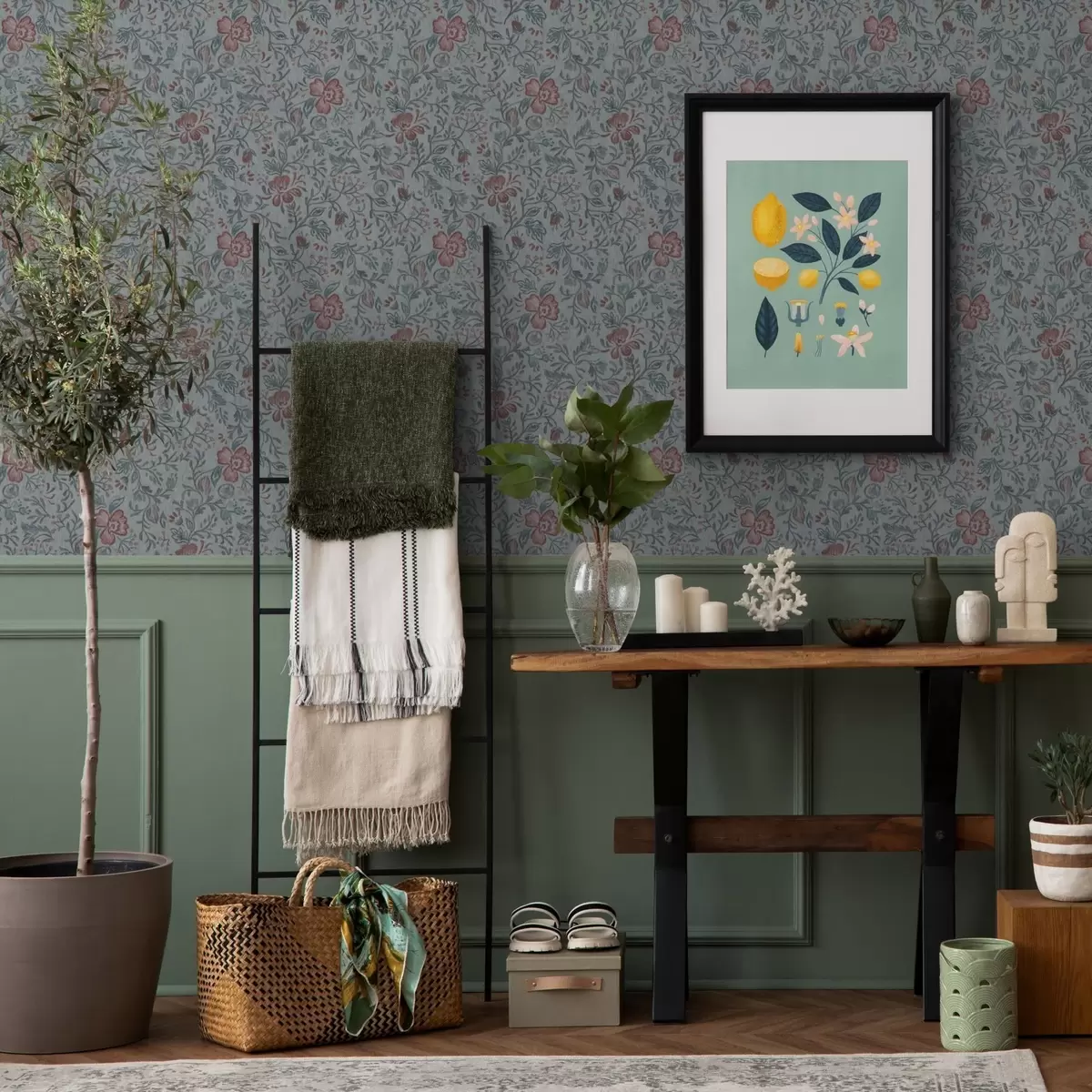 Carta da parati Fiori pastello su sfondo grigio-blu Nr. a00499