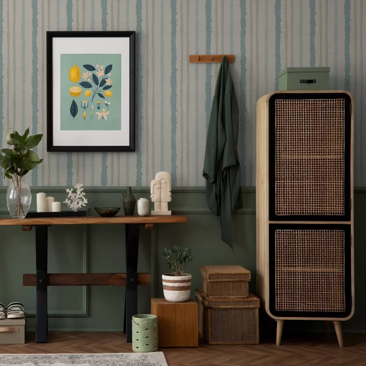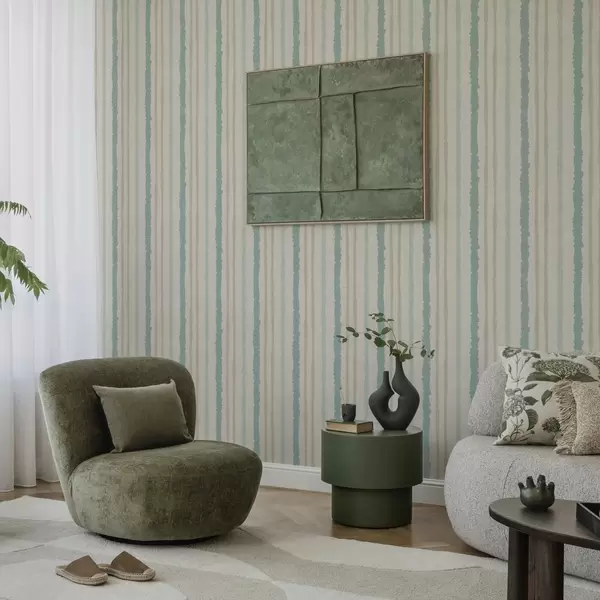 Carta da parati Righe turchesi-beige con effetto dipinto a mano Nr. a00510v1