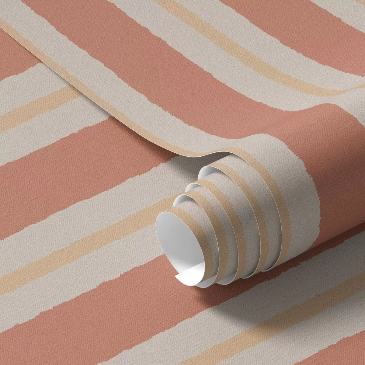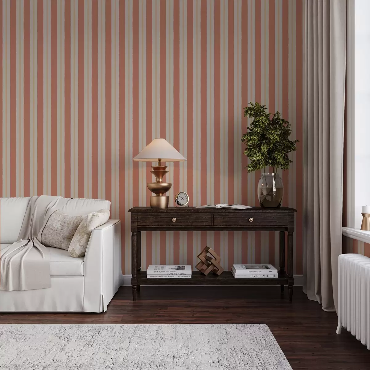 Carta da parati Strisce di terracotta brillante con accenti beige a00515