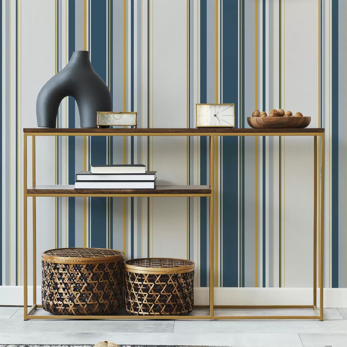 Carta da parati Fitto disegno di strisce verticali blu e gialle Nr. a00524