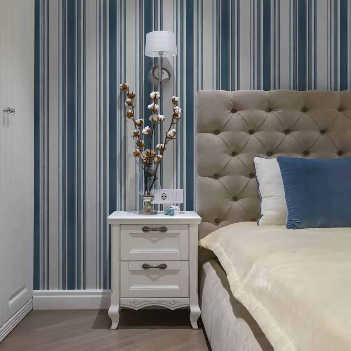 Carta da parati Strisce blu di spessore variabile con spazi vuoti leggeri Nr. a00568