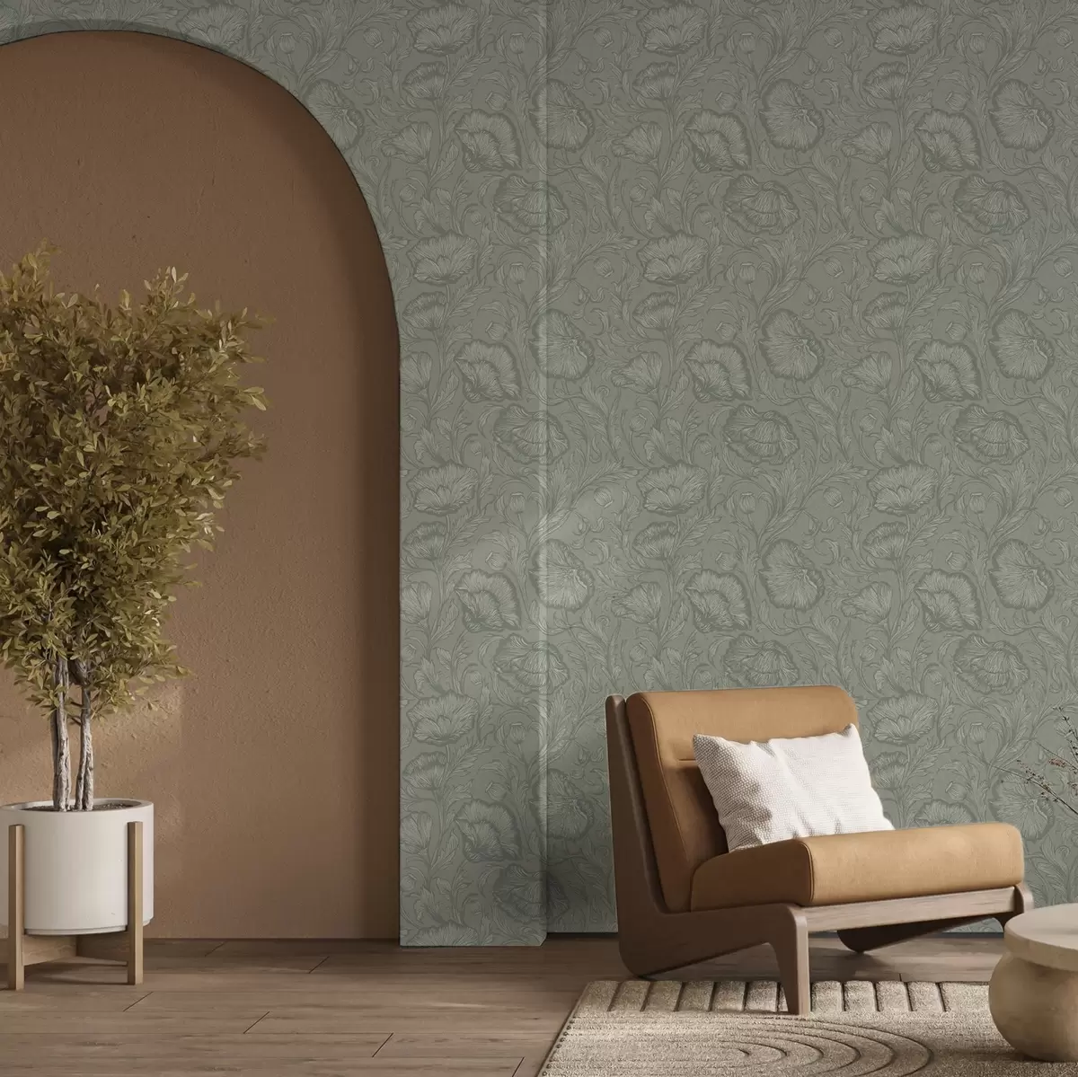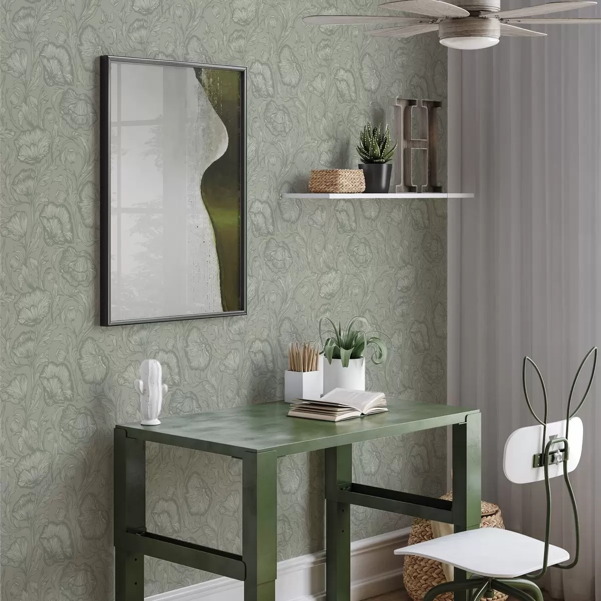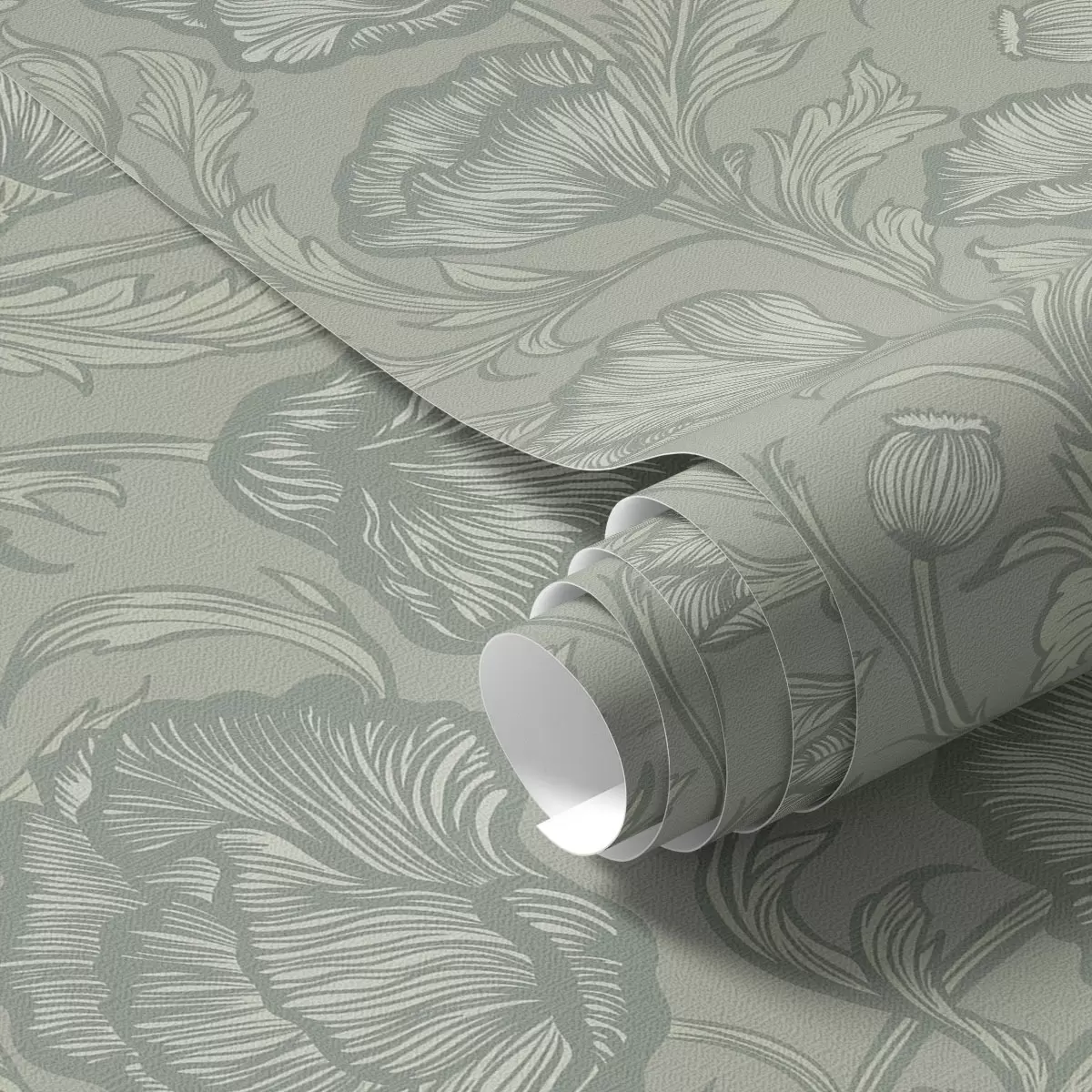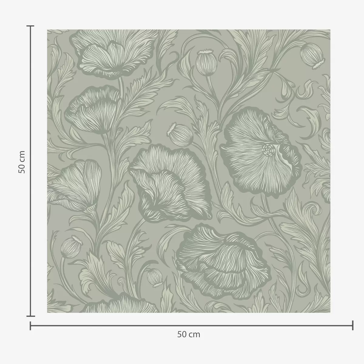 Carta da parati Papaveri disegnati su sfondo grigio-verde Nr. a00572v1