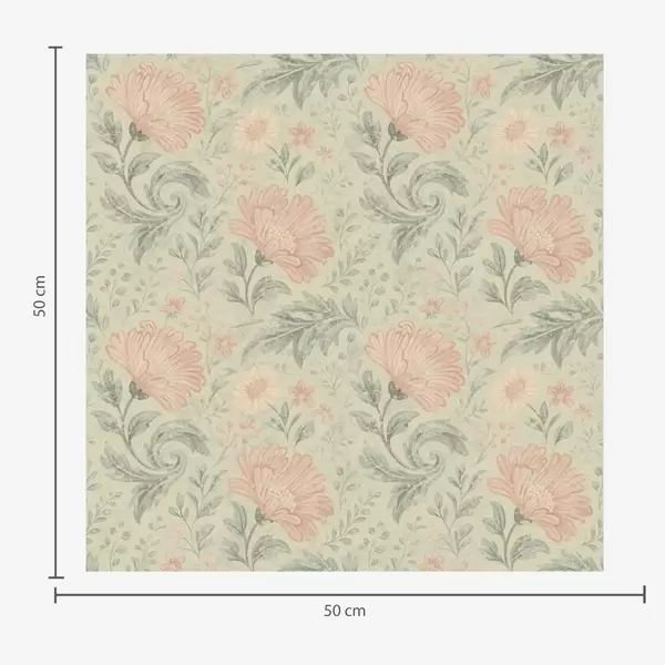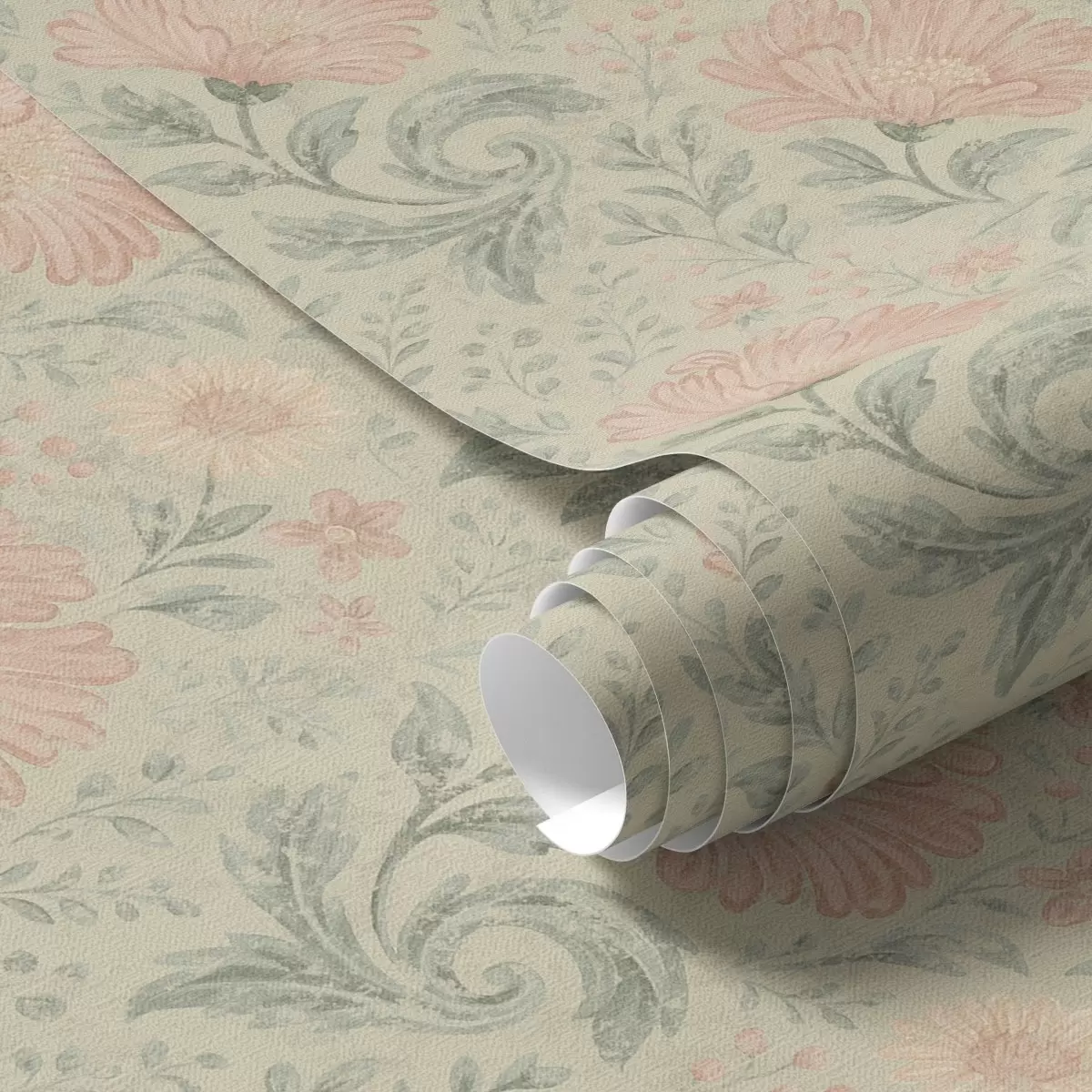 Carta da parati Grandi fiori di pesco vintage con foglie di salvia Nr. a00580