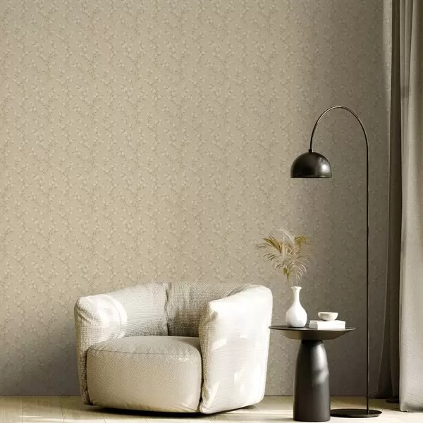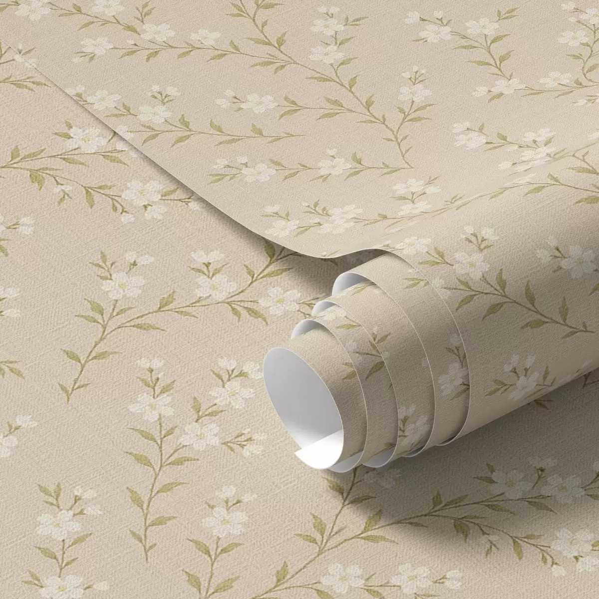 Carta da parati Piccoli rametti bianchi su sfondo di lino beige Nr. a00584