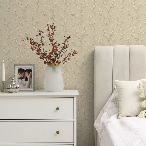 Carta da parati Piccoli rametti bianchi su sfondo di lino beige Nr. a00584