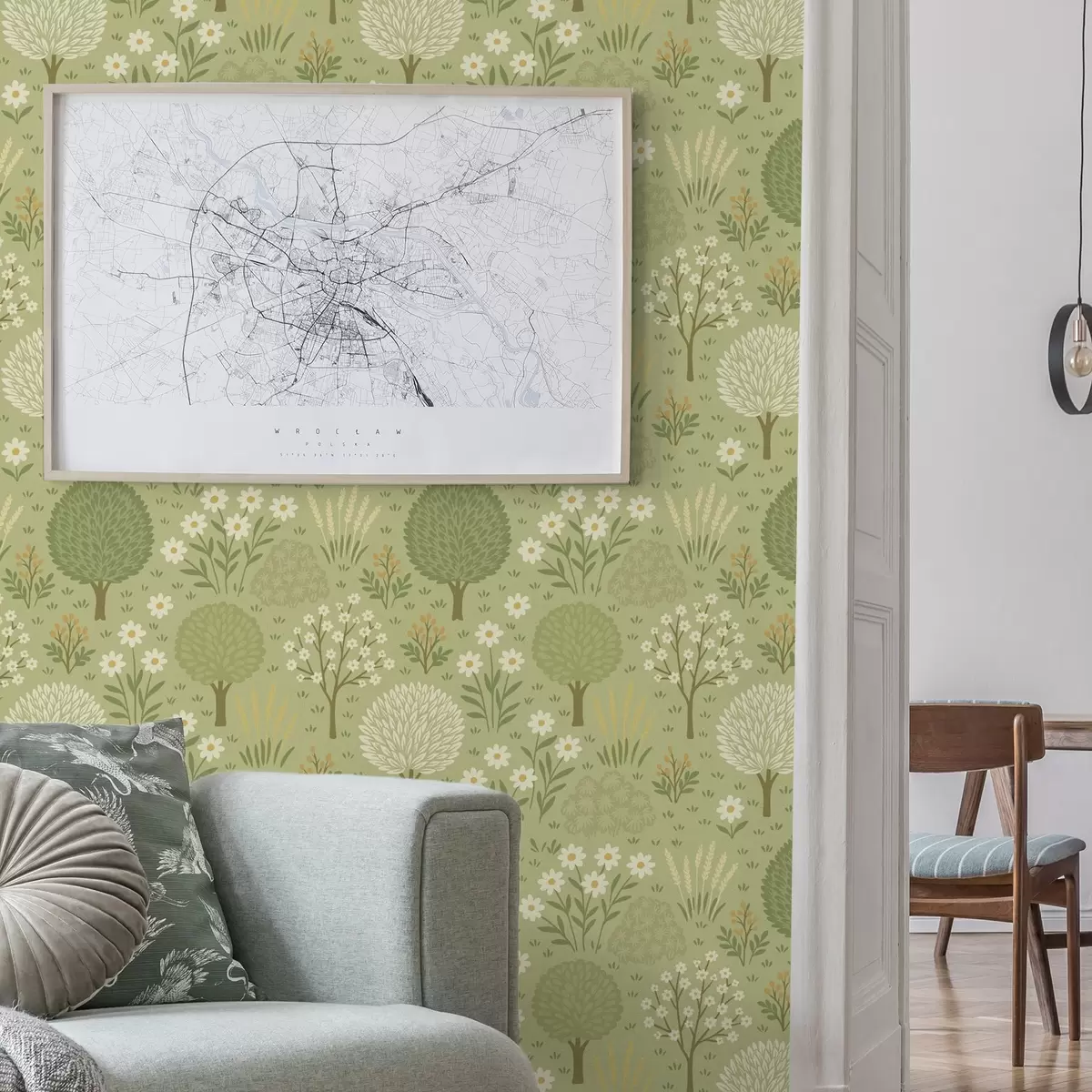 Carta da parati Il giardino verde dei bambini: alberi, fiori e grano Nr. a00586