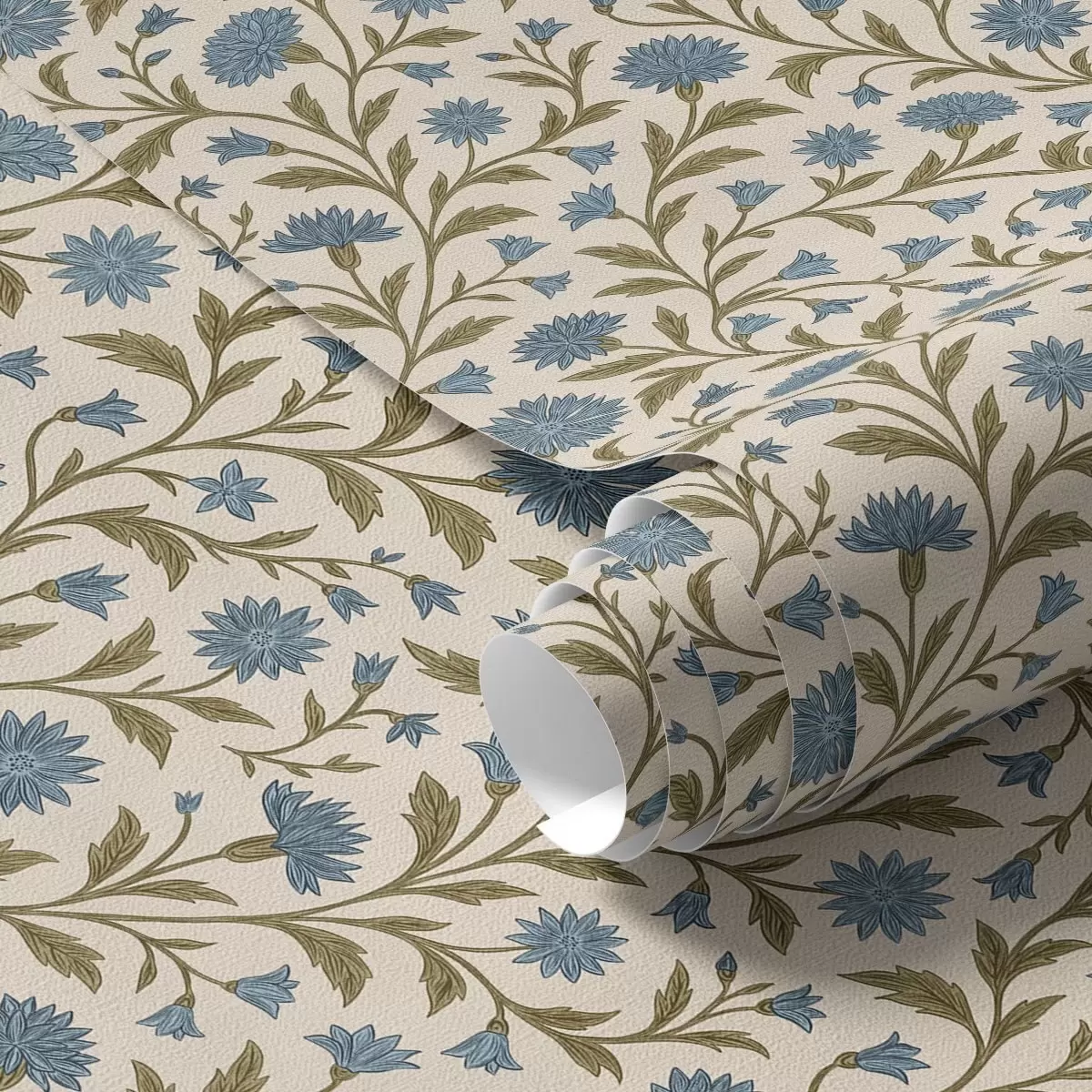 Carta da parati Fiordalisi e germogli su sfondo beige Nr. a00588